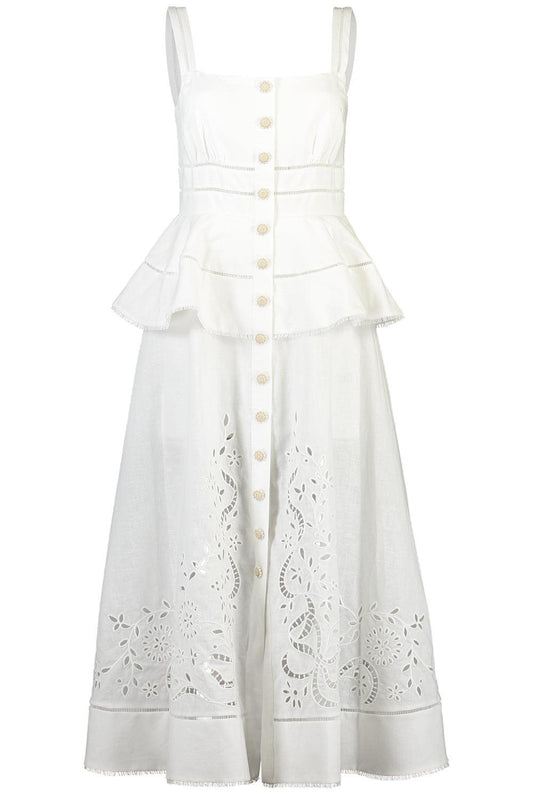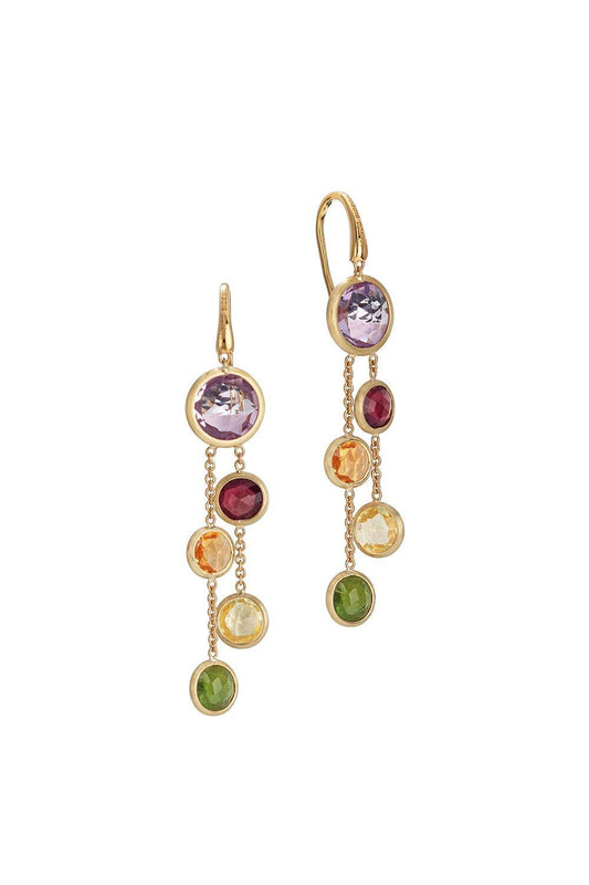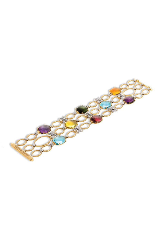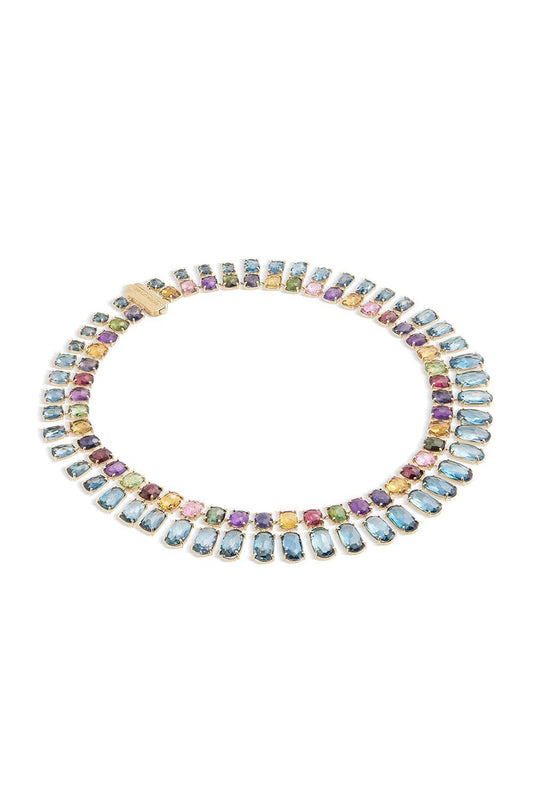 Pair Alanui’s chevron-knit fringe cardigan over the crisp white Alexis Etra skirt, and accessorize with bright, beautiful pieces like Marco Bicego’s Murano gemstone collar, set with cushion-cut gems and engraved 18K gold. Go from the market to the mezcal bar with Gigi Burris’ straw hat, Anya Hindmarch’s East West Bow tote, and Jimmy Choo’s Ayla wedges.