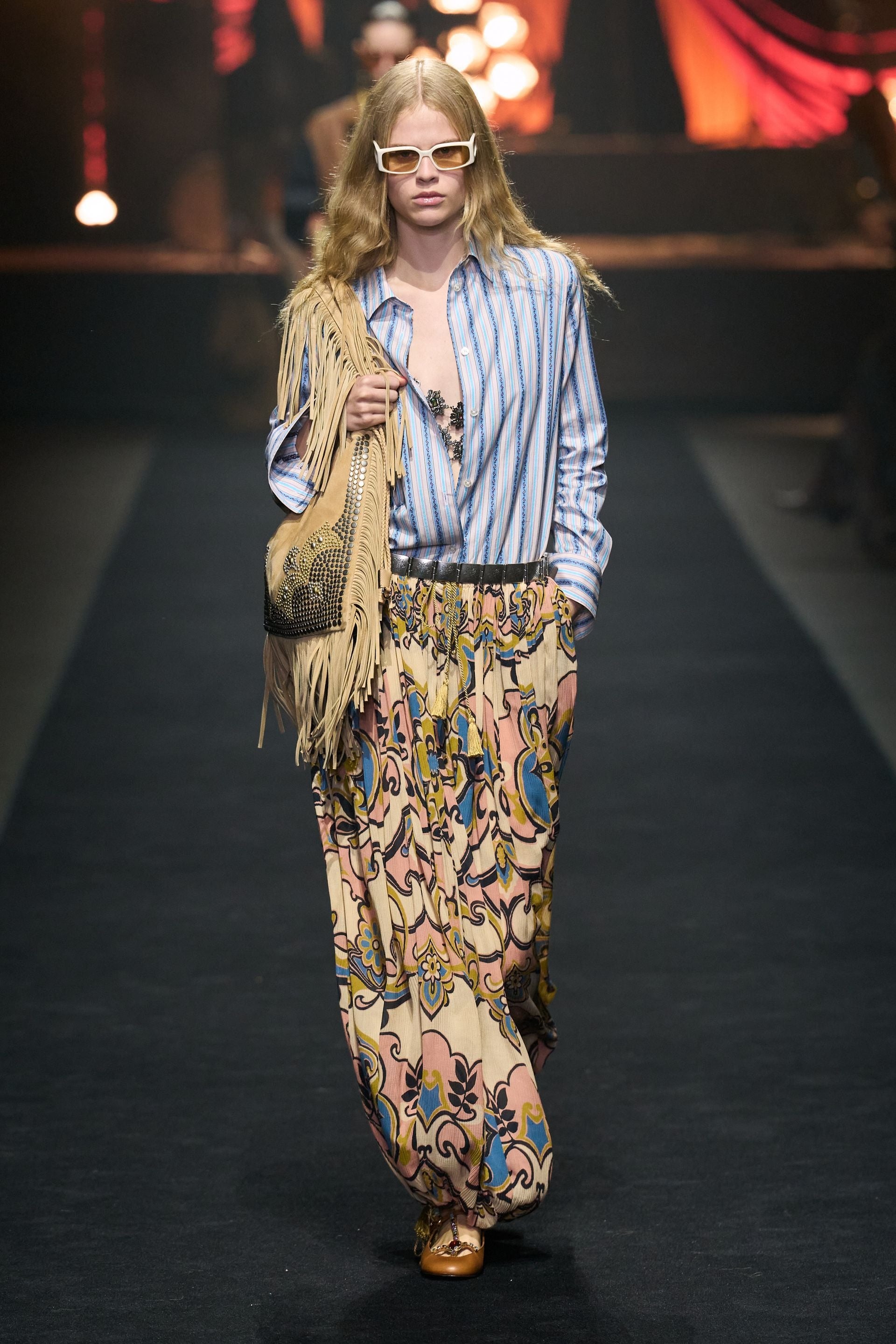 Milan once again proved why it sits at the epicenter of global fashion. Fashion Week was defined by contrasts: lightness against form, tradition recast, and color in motion. Alberta Ferretti unveiled weightless silks and diaphanous layers that moved like air itself. Brunello Cucinelli embraced relaxed sophistication with linen blazers, wide-leg denim, striped knits, and shimmering skirts in neutrals and soft blues. Dolce & Gabbana leaned into archival seduction with corsetry, lace, and sharp monochrome. Etro layered paisleys and nomadic prints into sweeping, worldly statements. Missoni brought knitwear alive with twisting stripes and kinetic color play. Roberto Cavalli commanded attention with python motifs, metallic gleam, and daring cutouts. Versace channeled power dressing with sharp pinstripes, ornate vests, and embroidered arm sleeves.