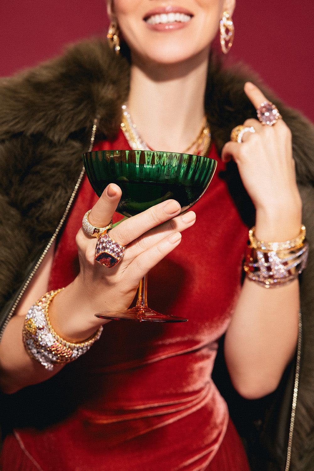 Whether you’re the hostess or the best dressed guest, these are the top jewelry must haves for the party season. Go big with an oversized earring! Cuff it up or layer your diamonds. Don’t forget a statement necklace and finish it off with a juicy cocktail ring.