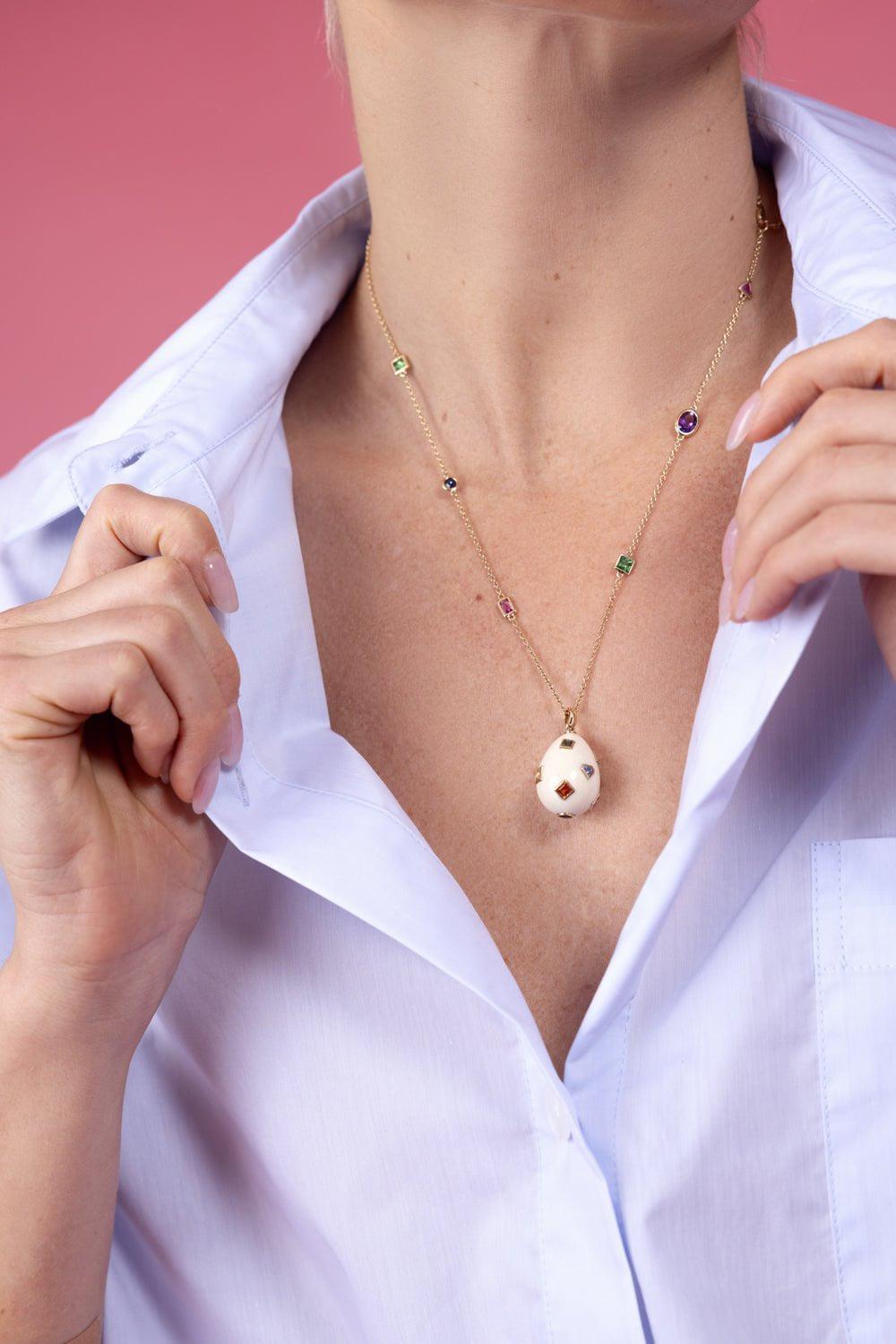 Bibi Van Der Velden multi sapphire pop art necklace in yellow gold.
