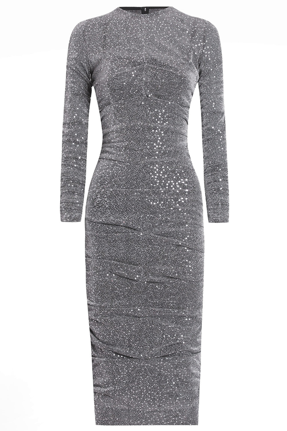 Dolce & Gabbana long sleeve ruched midi dress in argento.