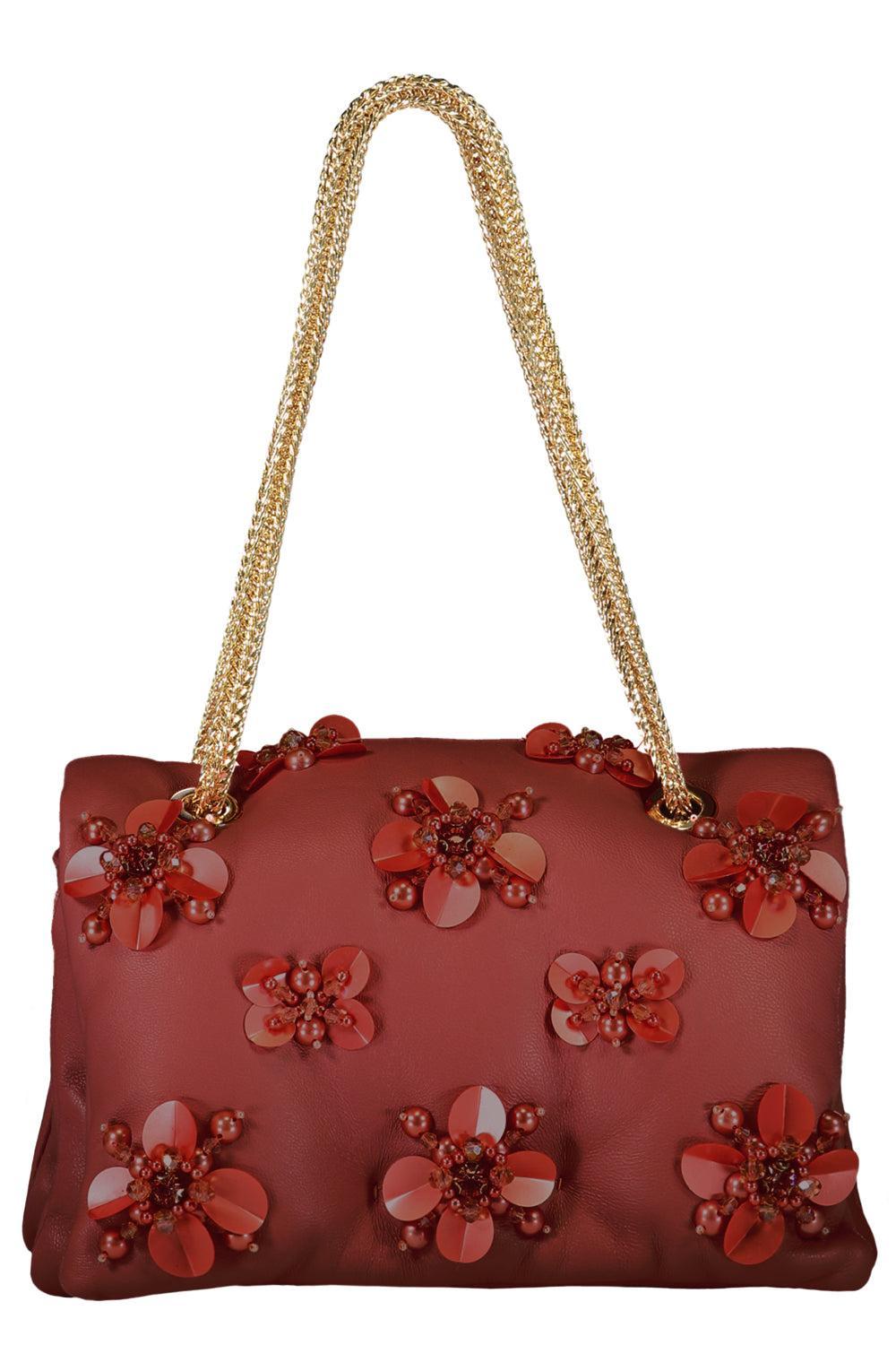 Giambattista Valli mini airbag cushion bag in bordeaux/gold.