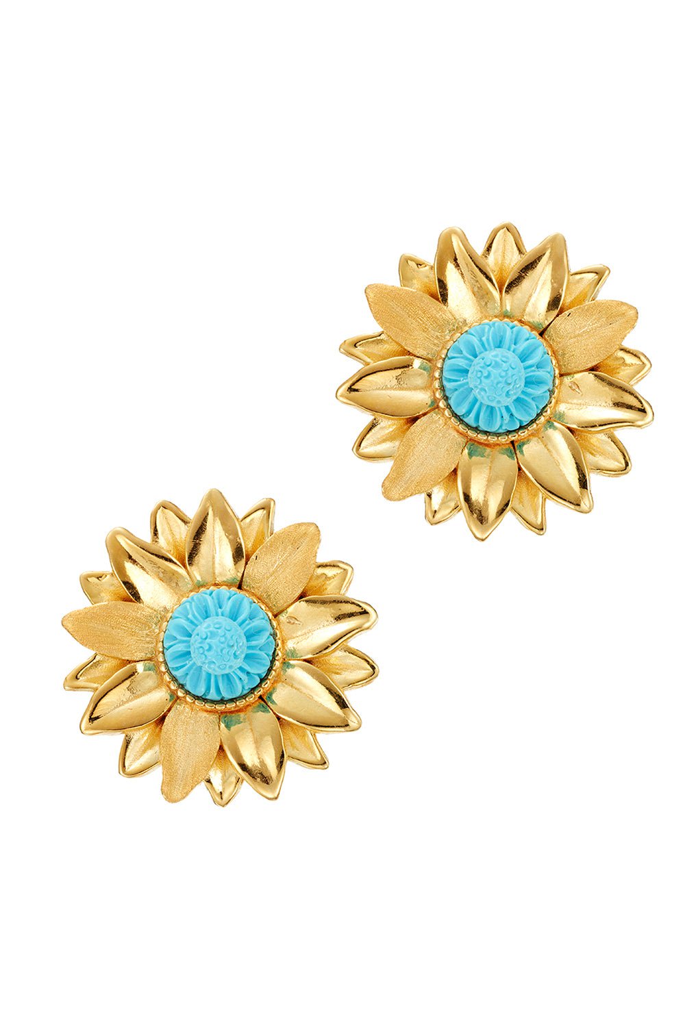 Inspired by the sunflower fields in Southern Italy, we designed these earrings with a hand carved coral flower at the center and golden petals to catch rays of light.