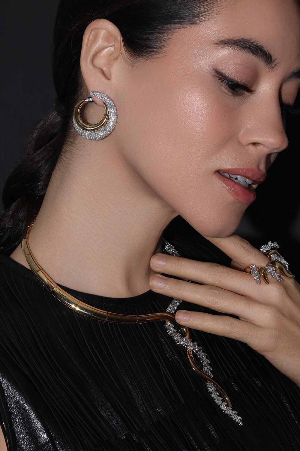 Yeprem golden strada diamond open hoop earrings in yellow gold.
