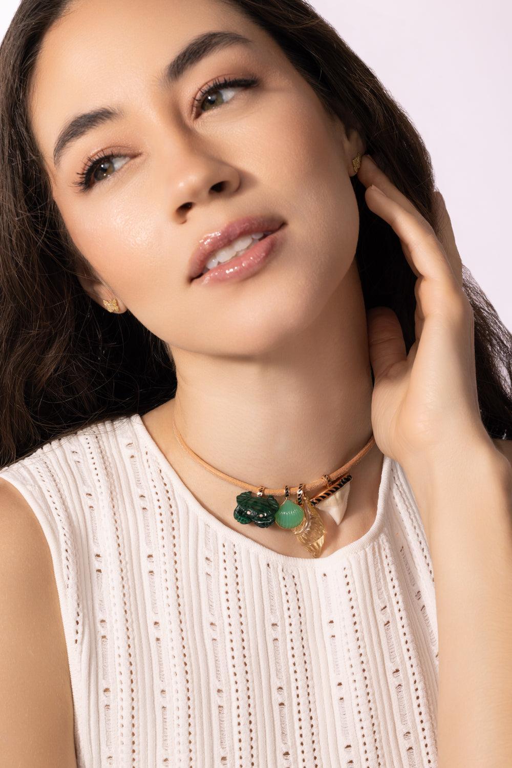 Dezso By Sara Beltran malachite diamond carved crab pedant in rose gold.