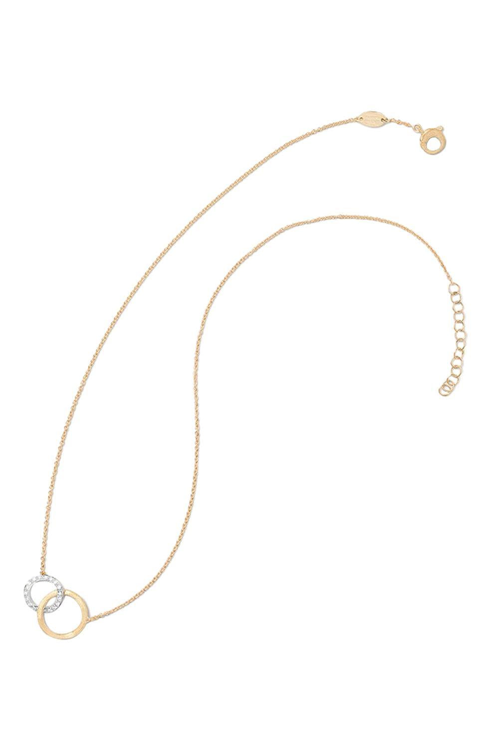 Marco Bicego jaipur mixed link diamond necklace in yellow gold.