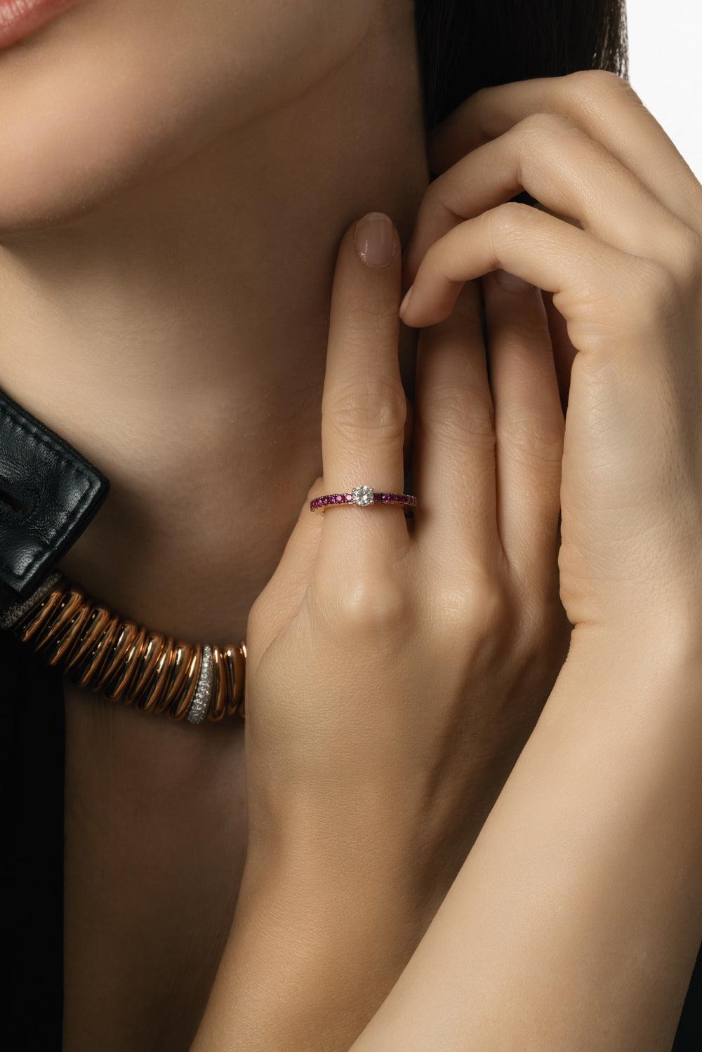 Roberto Demeglio diamond ruby white extensible band ring in rose gold.