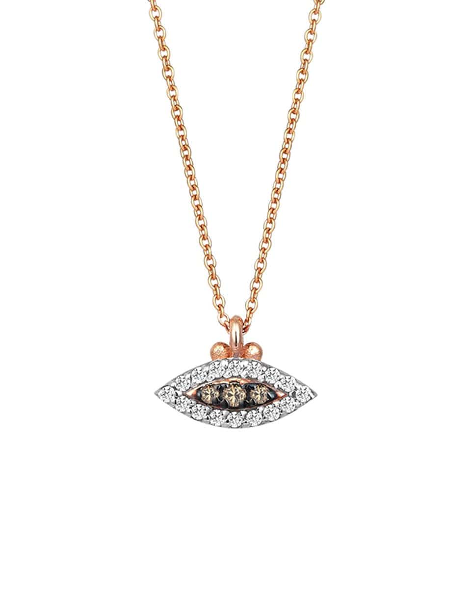 Kismet by Milka 10th Eye Haven Necklace with white and champagne diamonds set in 14k rose gold.