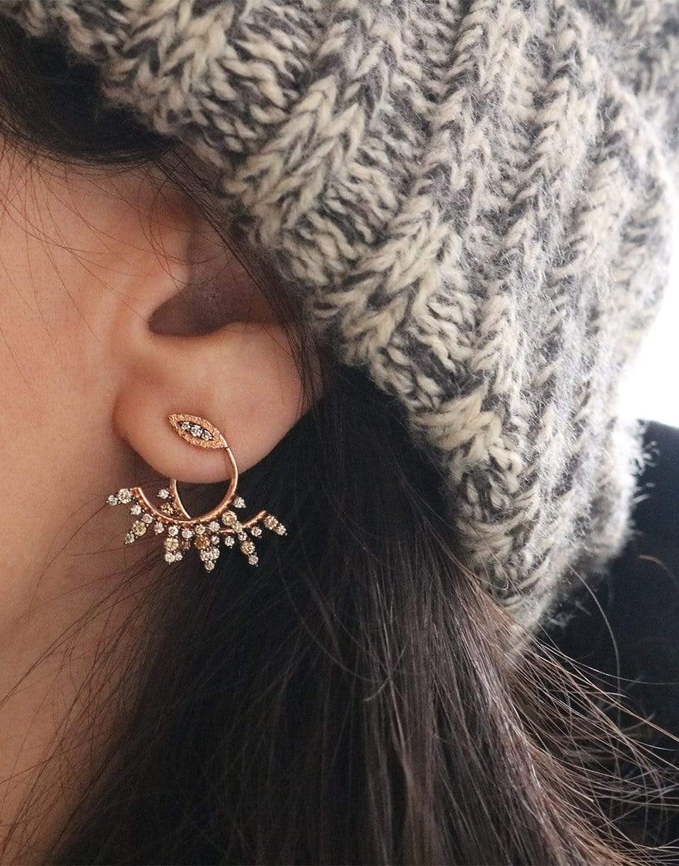 Kismet by Milka single 10th Eye Regina round earjacket with champagne diamonds set in 14k rose gold.