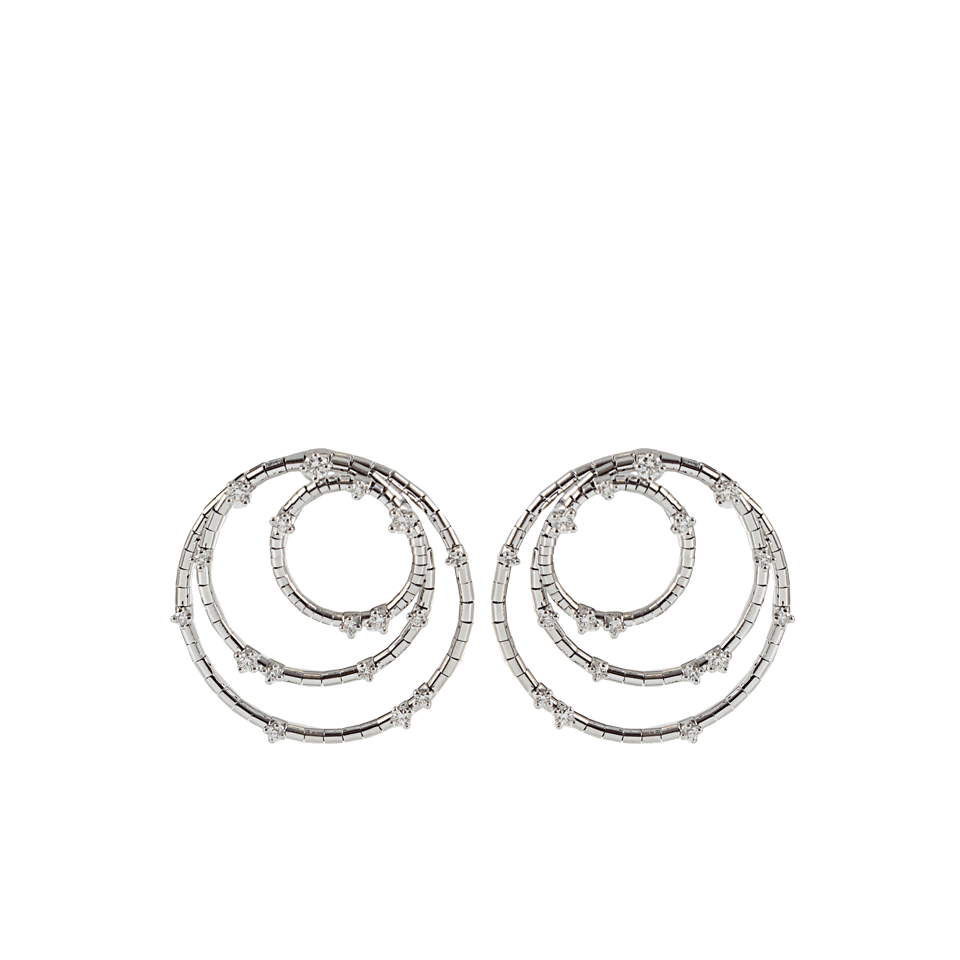 With diamonds sprinkled on their slim titanium hoops like morning dew drops, Mattia Cielo's 3-circle rugiada earrings are delicate beauties. Extremely light-weight and feminine with their triple hoop look, this accessory is not only exquisite, but distinctively innovative. Be the first to show off their unique design.