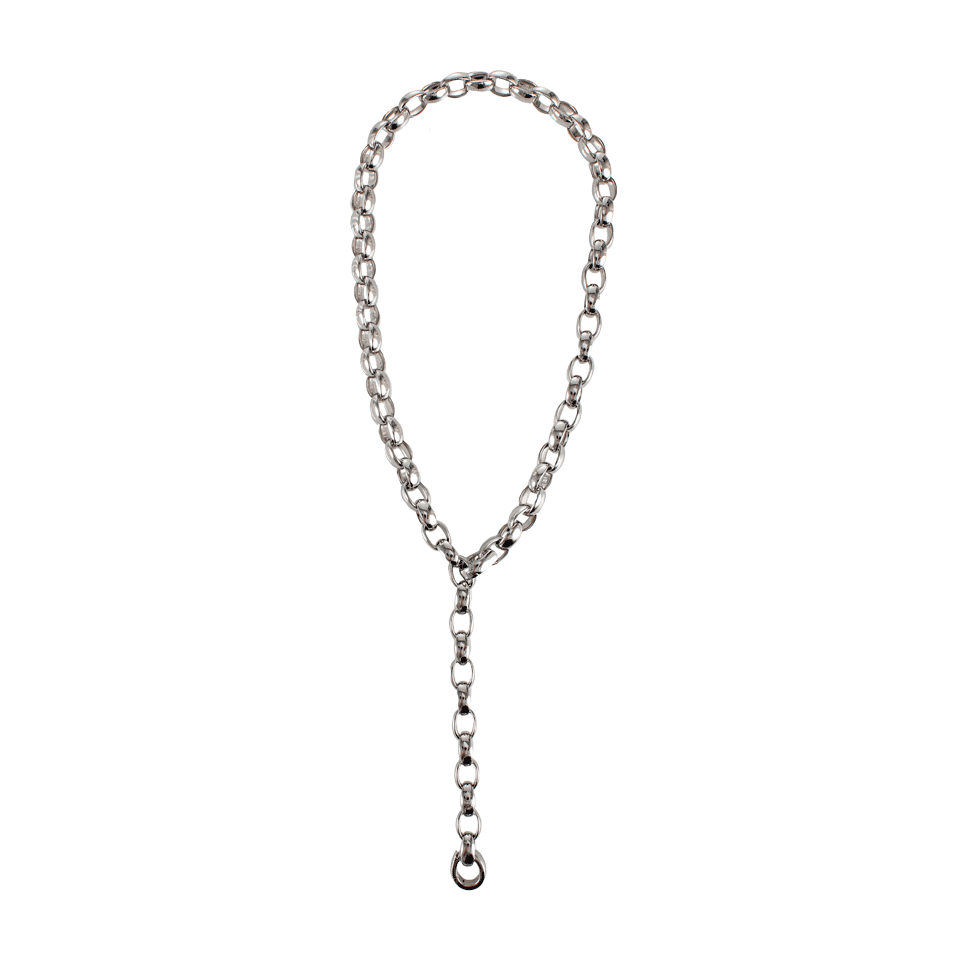 Tamara Comolli’s 49cm mini-roulette necklace has a thick chain perfect for a hefty pendant or even by itself clasped straight around the neck or in varying lengths.