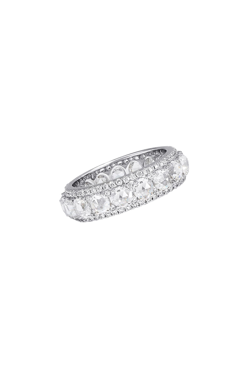64 Facets linear eternity ring in white gold.