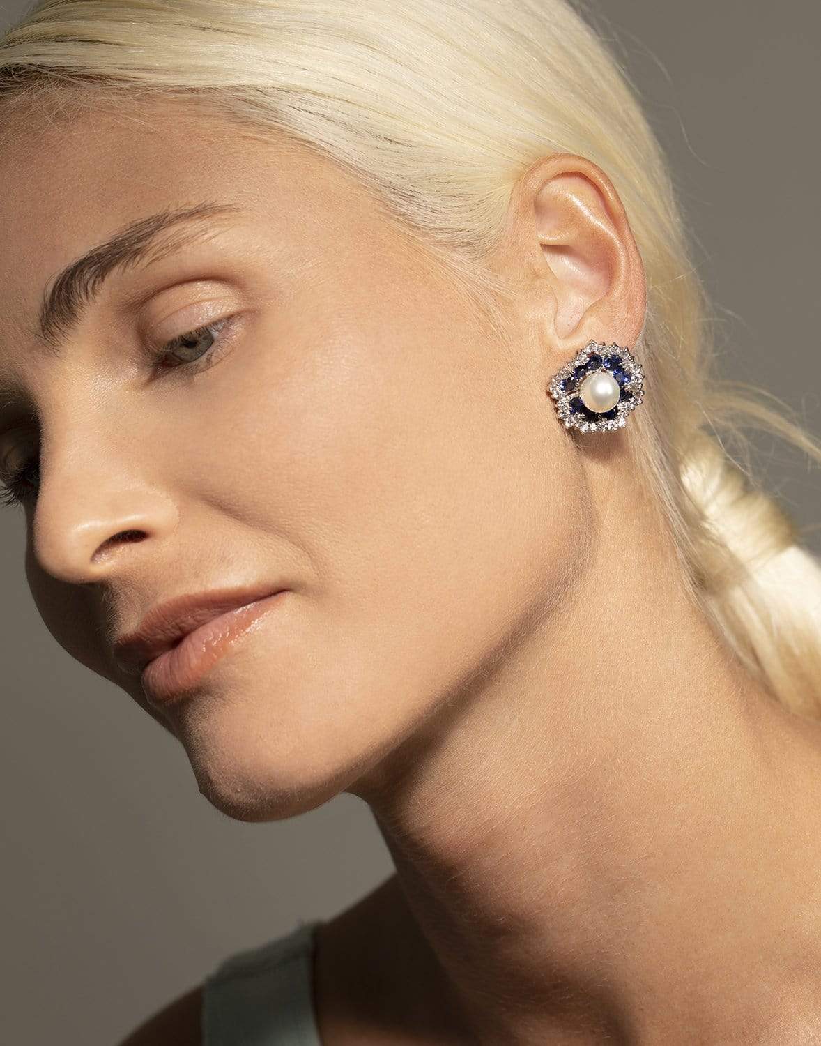 Fantasia by DeSerio sapphire cubic zirconia and pearl earrings.