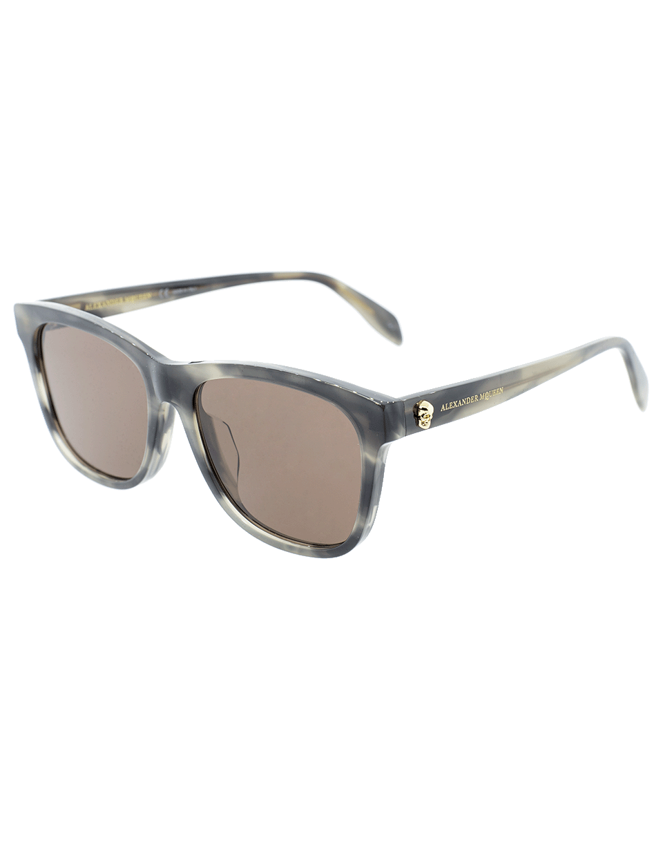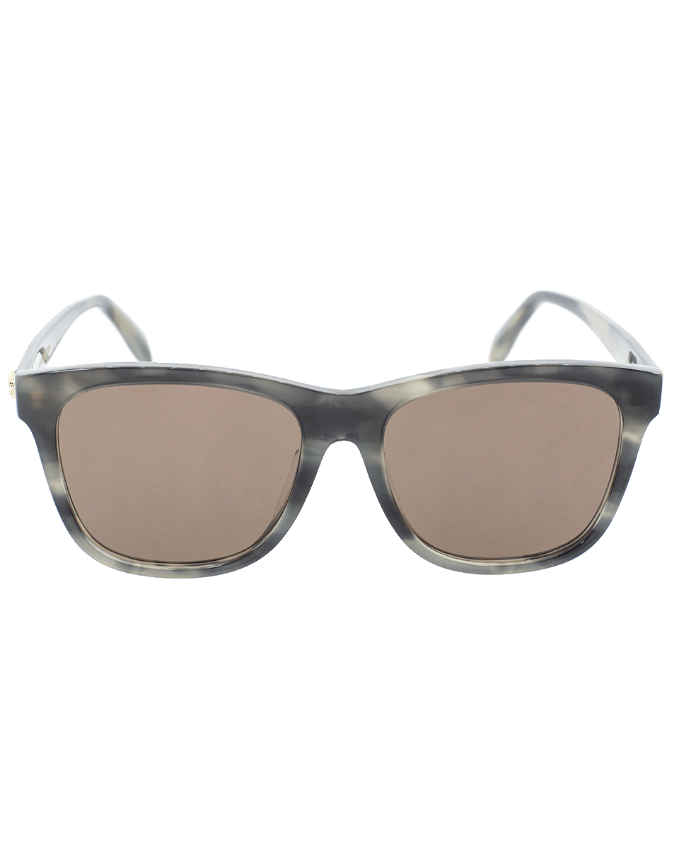 Grey acetate sunglasses by Alexander McQueen. These unisex frames feature a square silhouette with brown lenses and finished with the skull logo on the temple.