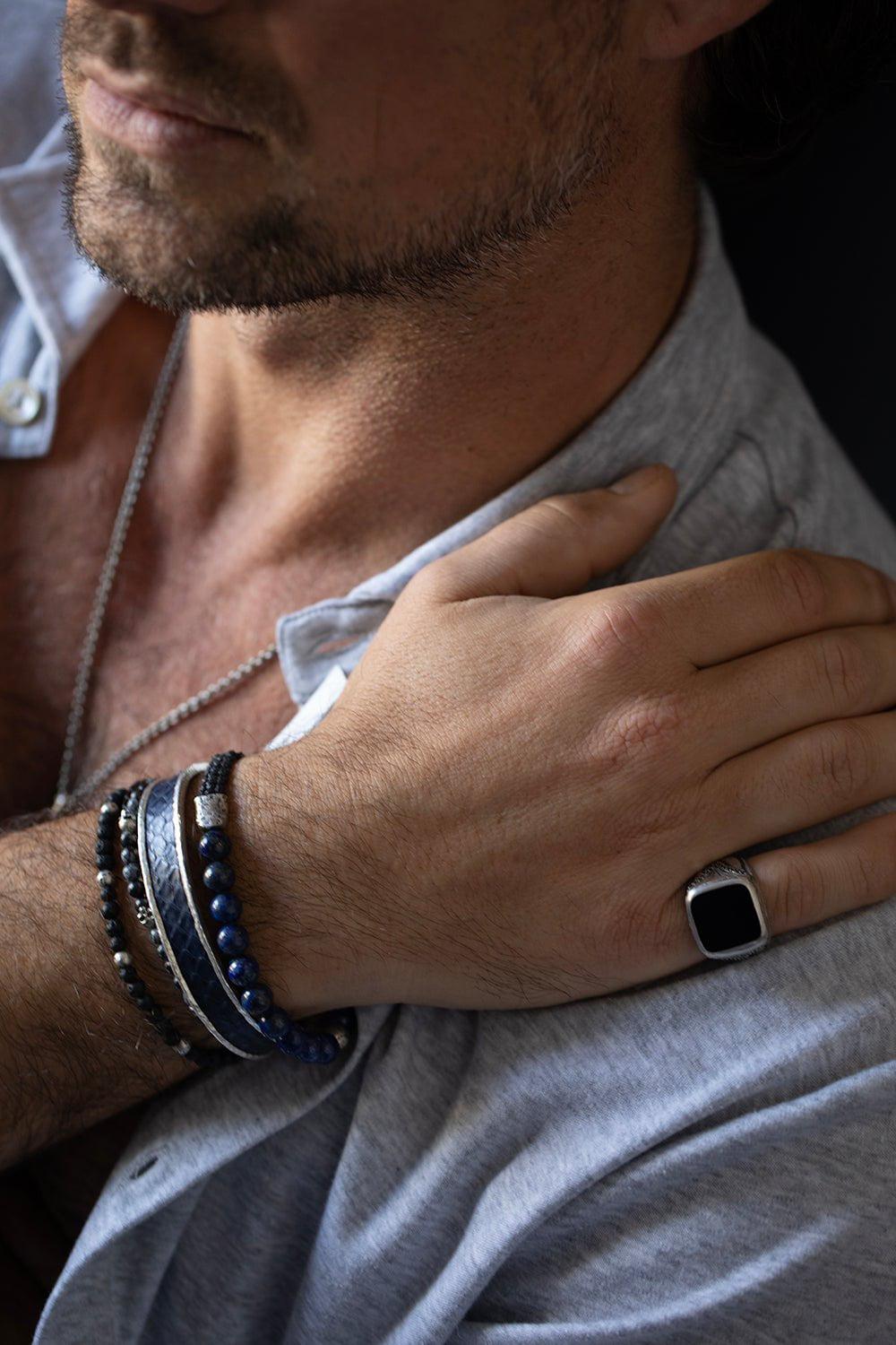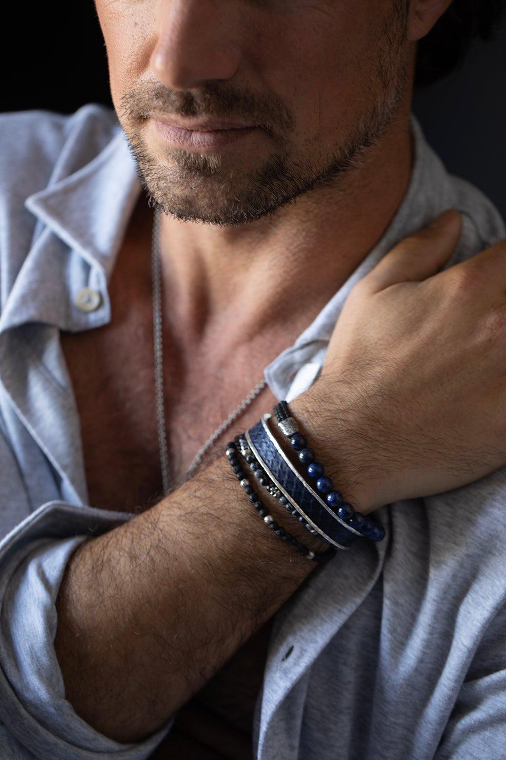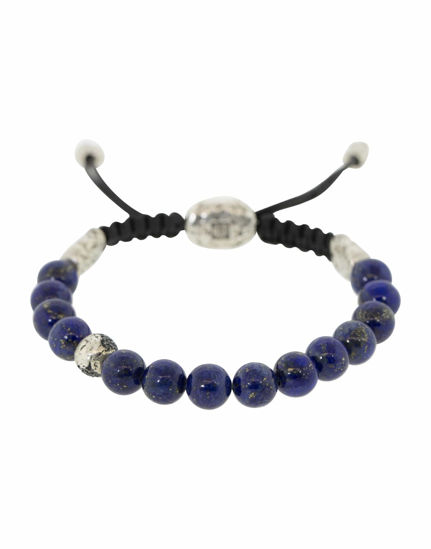 John Varvatos adjustable lapis bead bracelet with black diamonds set in sterling silver.