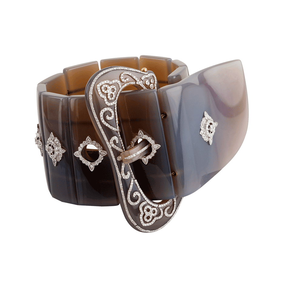 Buckle up for chic fashion with Bochic’s agate and diamond buckle cuff.