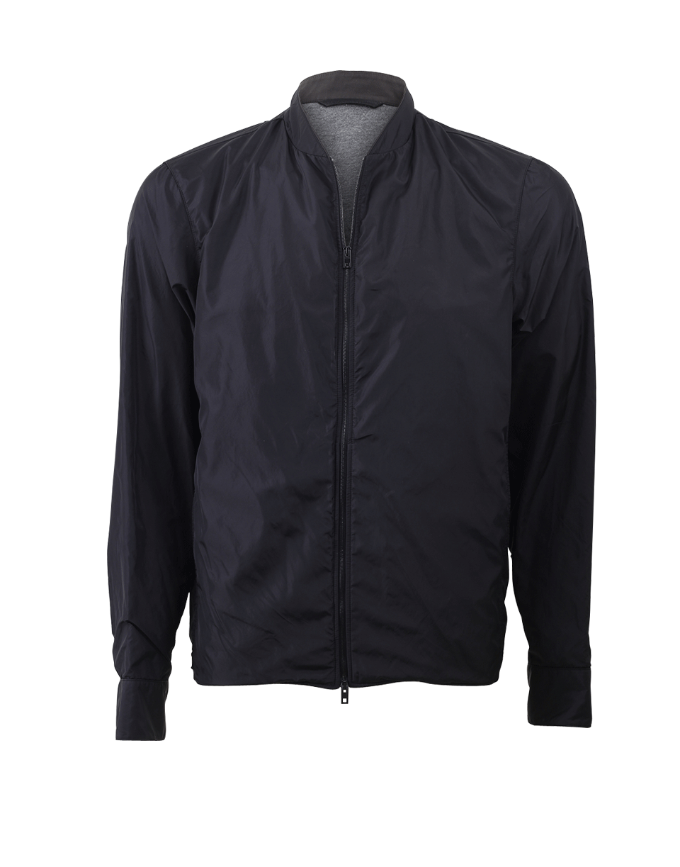Double Front Zip Closure With Band Collar, Two Front Slit Pockets, And Slim-Fitting Silhouette