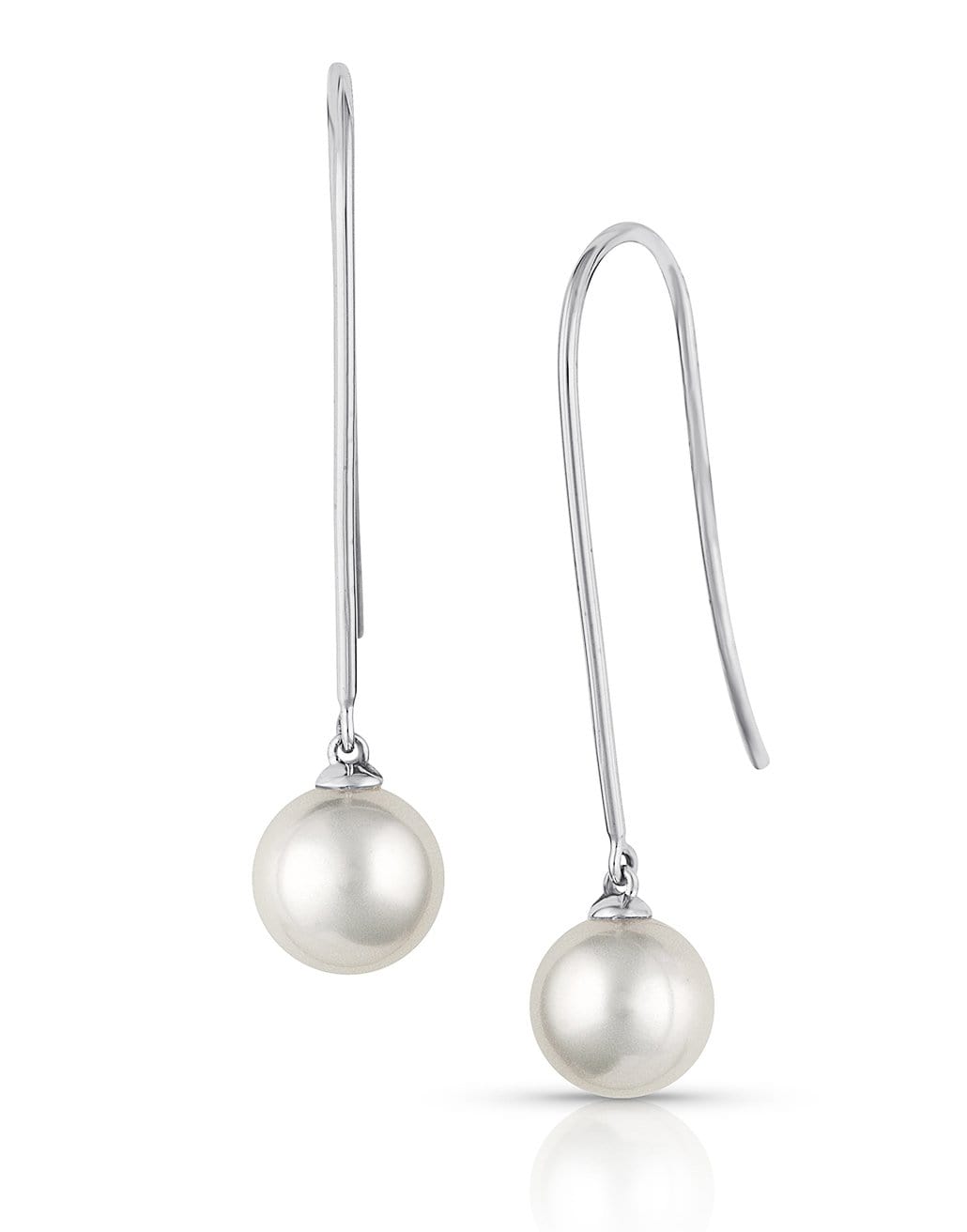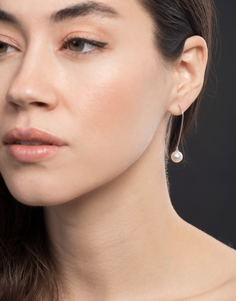 Long drop earrings finished with a beautiful Akoya pearl and a hook closure. For pierced ears.