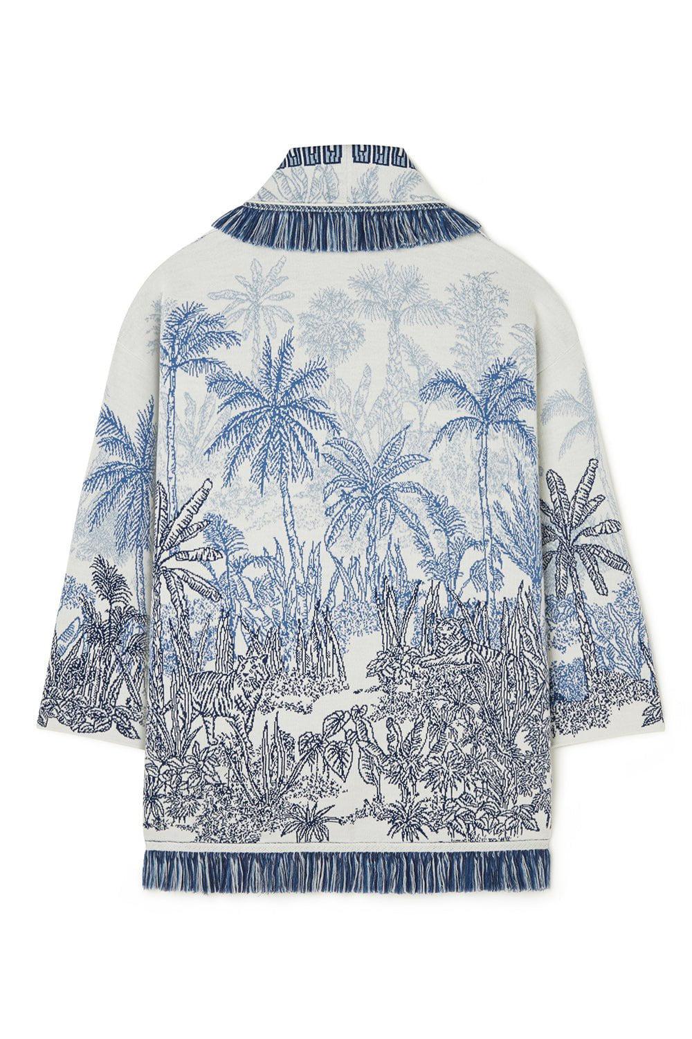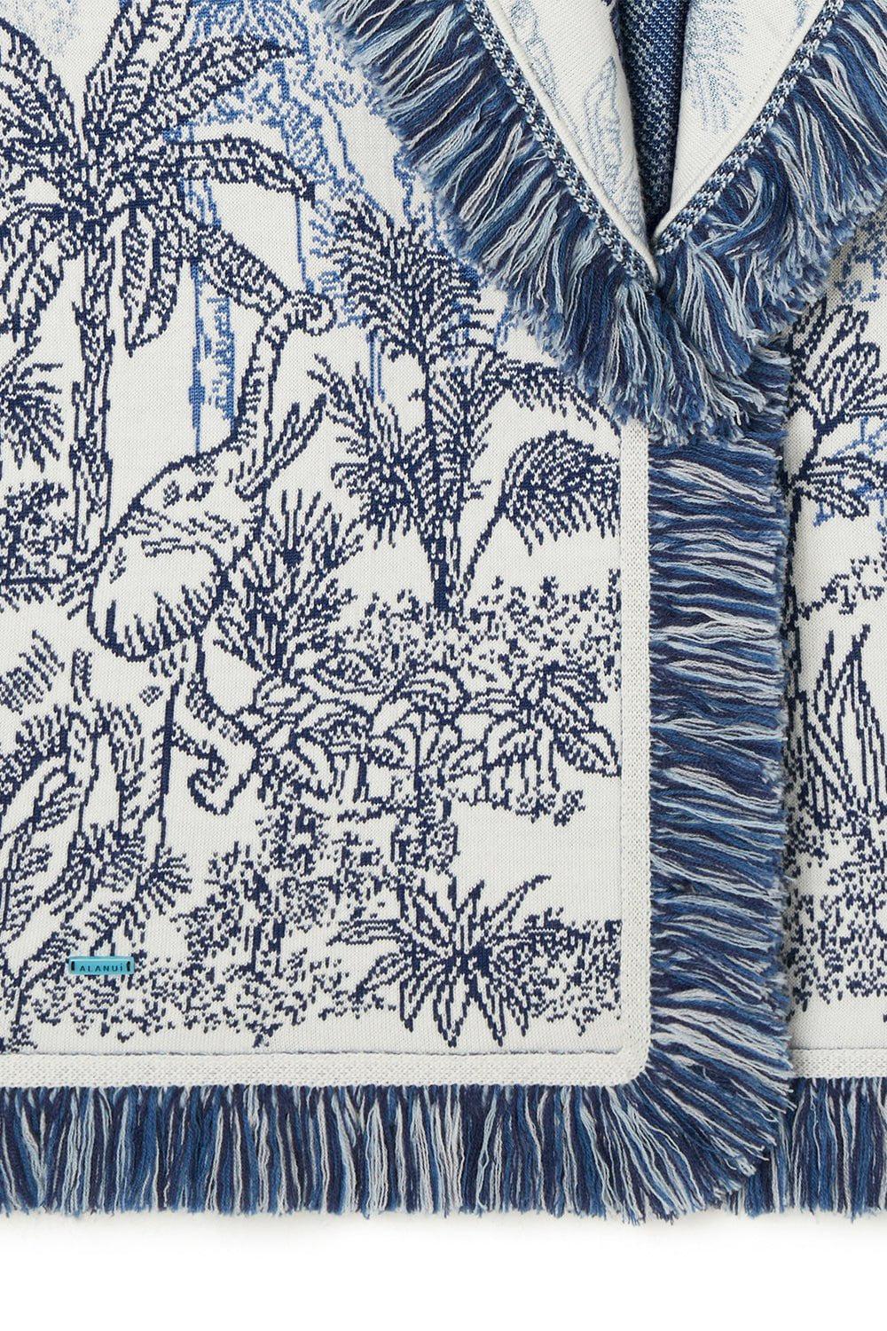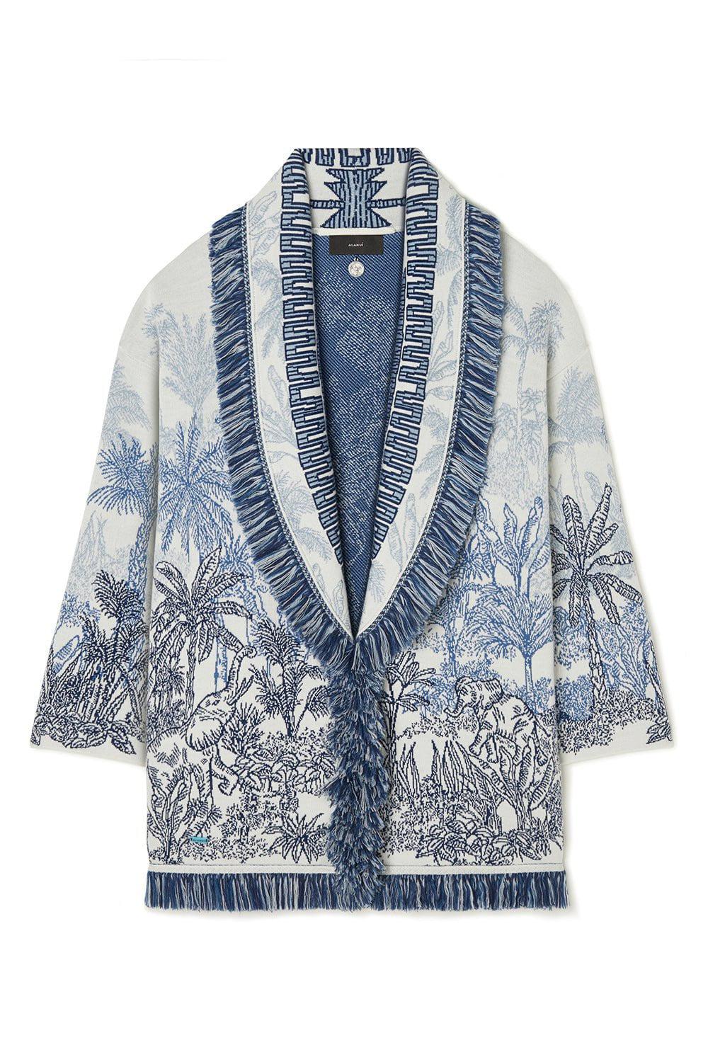 Alanui jungle toile de jouy cardigan in chalk deep blue.