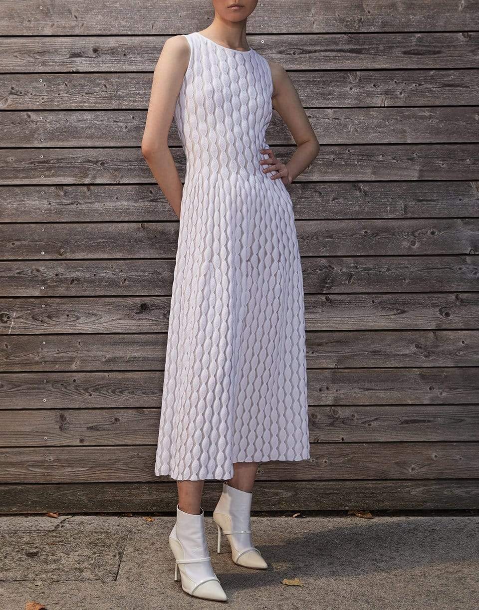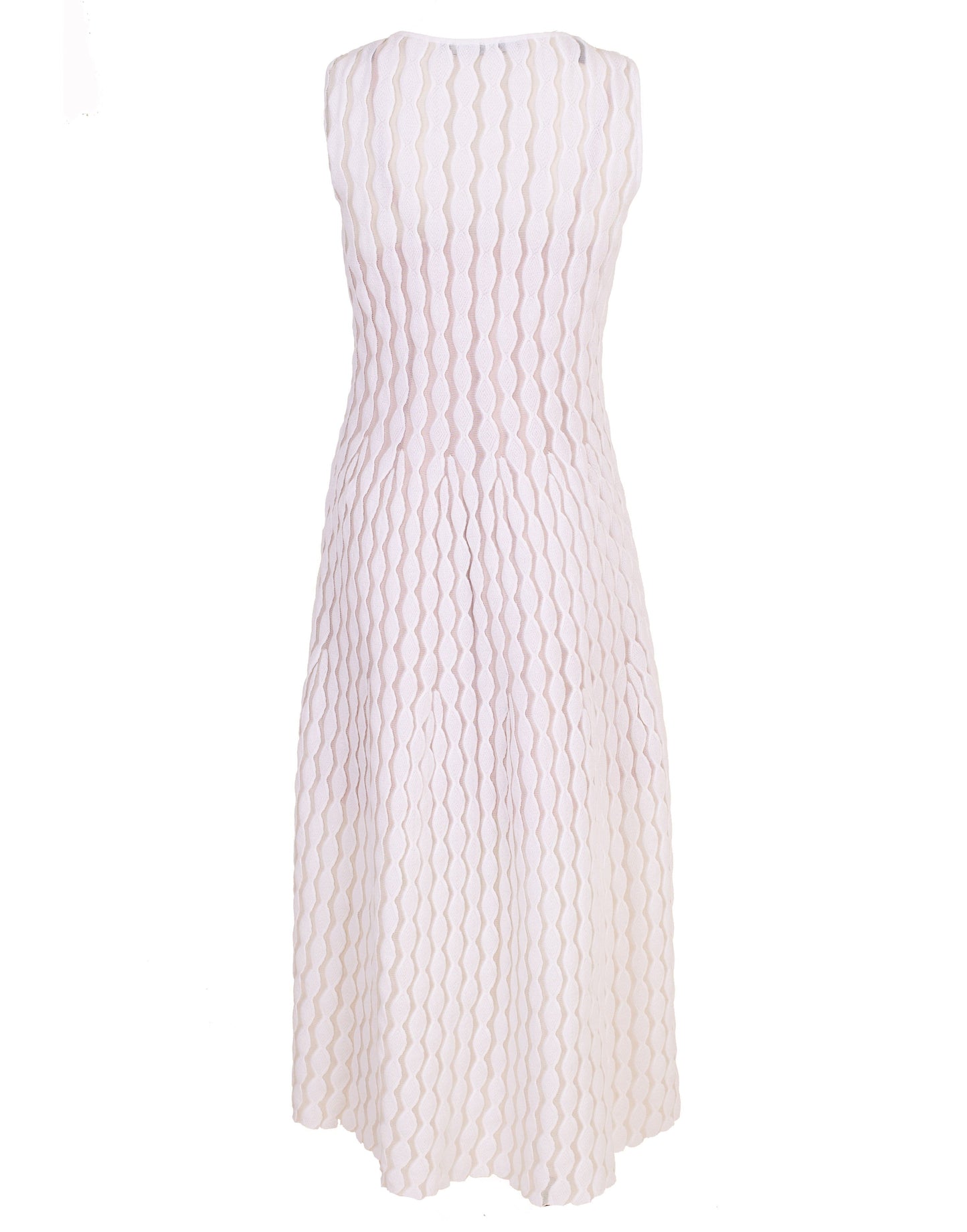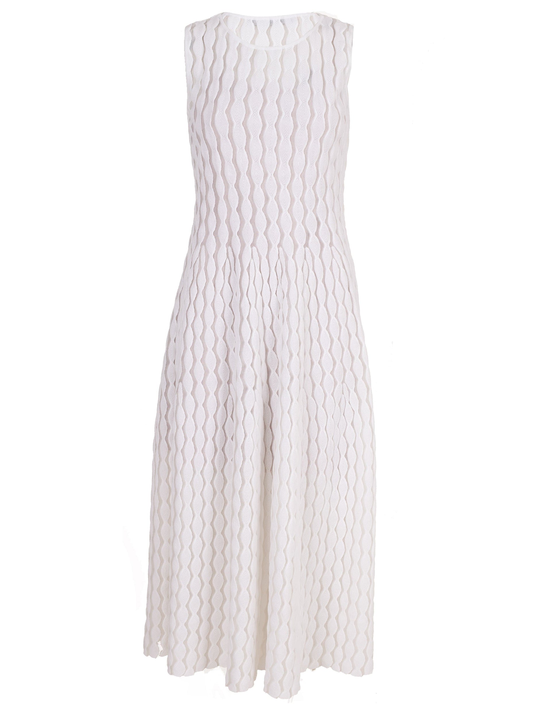 Antonino Valenti sleeveless silk knit patterned Alcione dress with a slim waist, round neck, and full length. Lined.