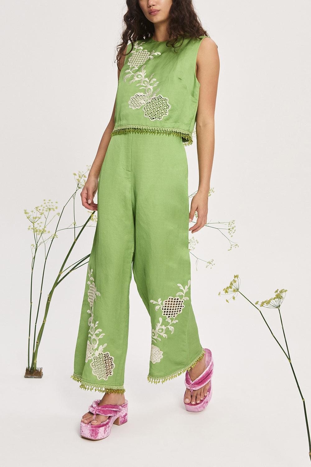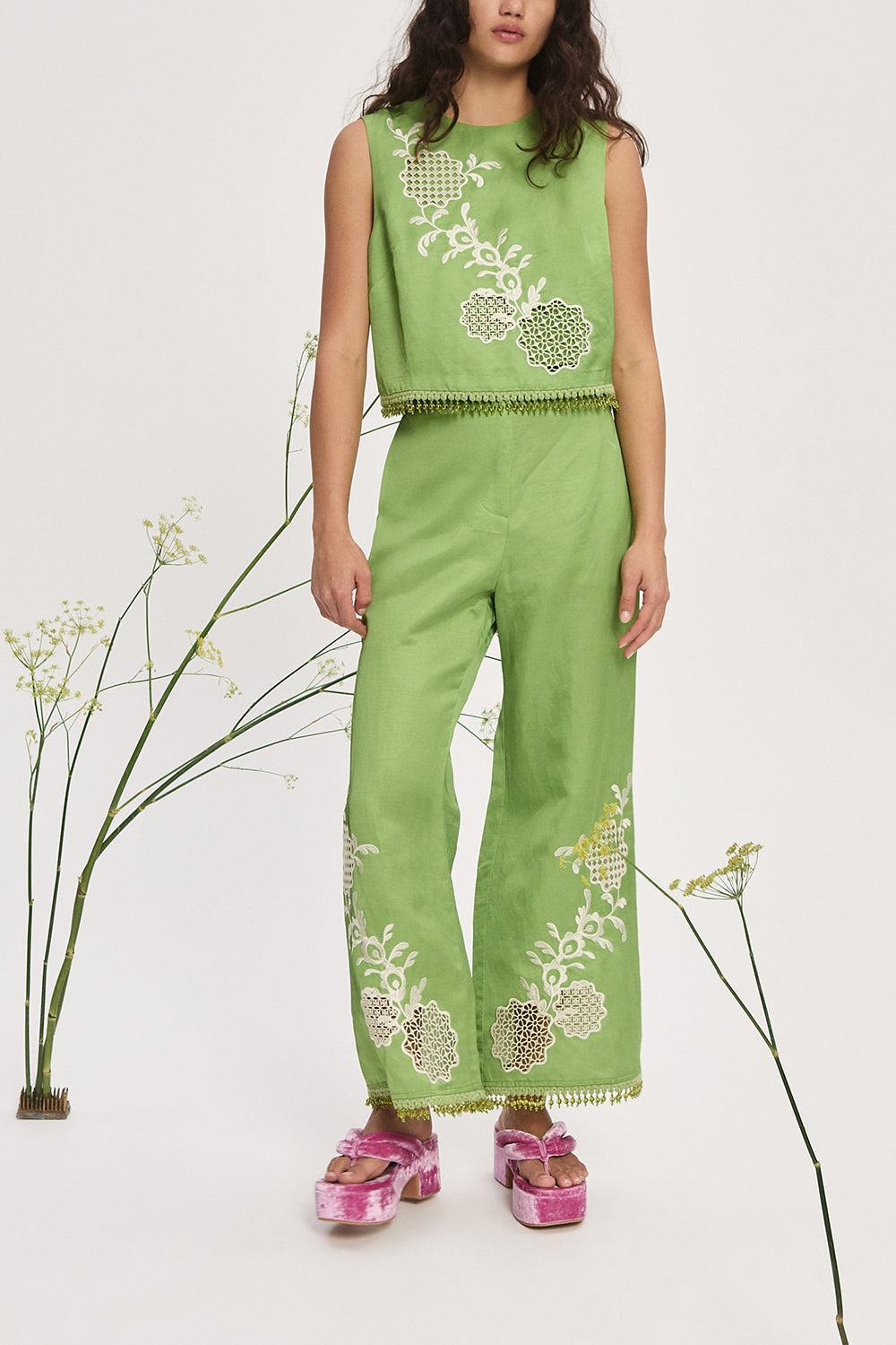 Alemais luisa embroidered top in green.