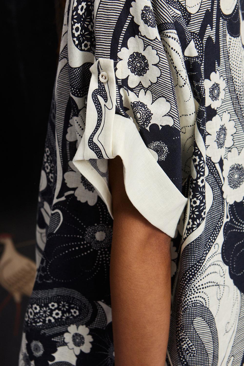 Pointed Collar And Stand Rolled Sleeve Hem With Tabs Concealed Placket With Self-Covered Buttons, Inseam Pockets