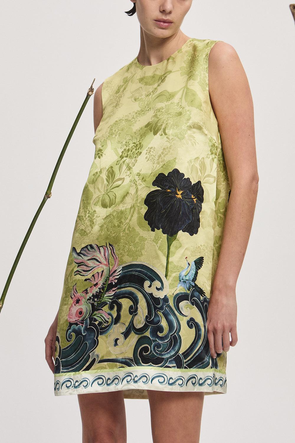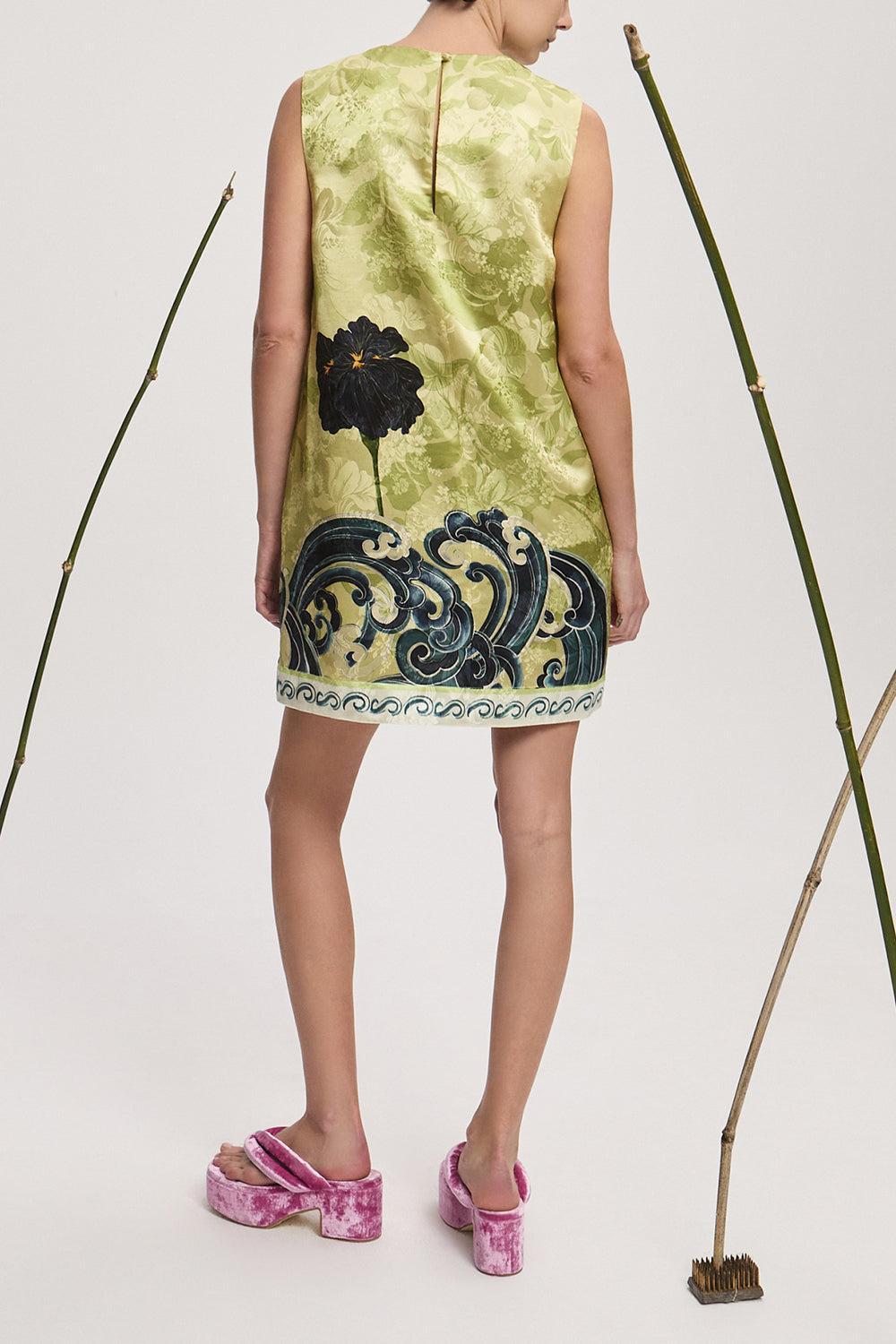 Straight Mini Dress, Silhouette Round Neck Loop And Button Closure At Centre Back
