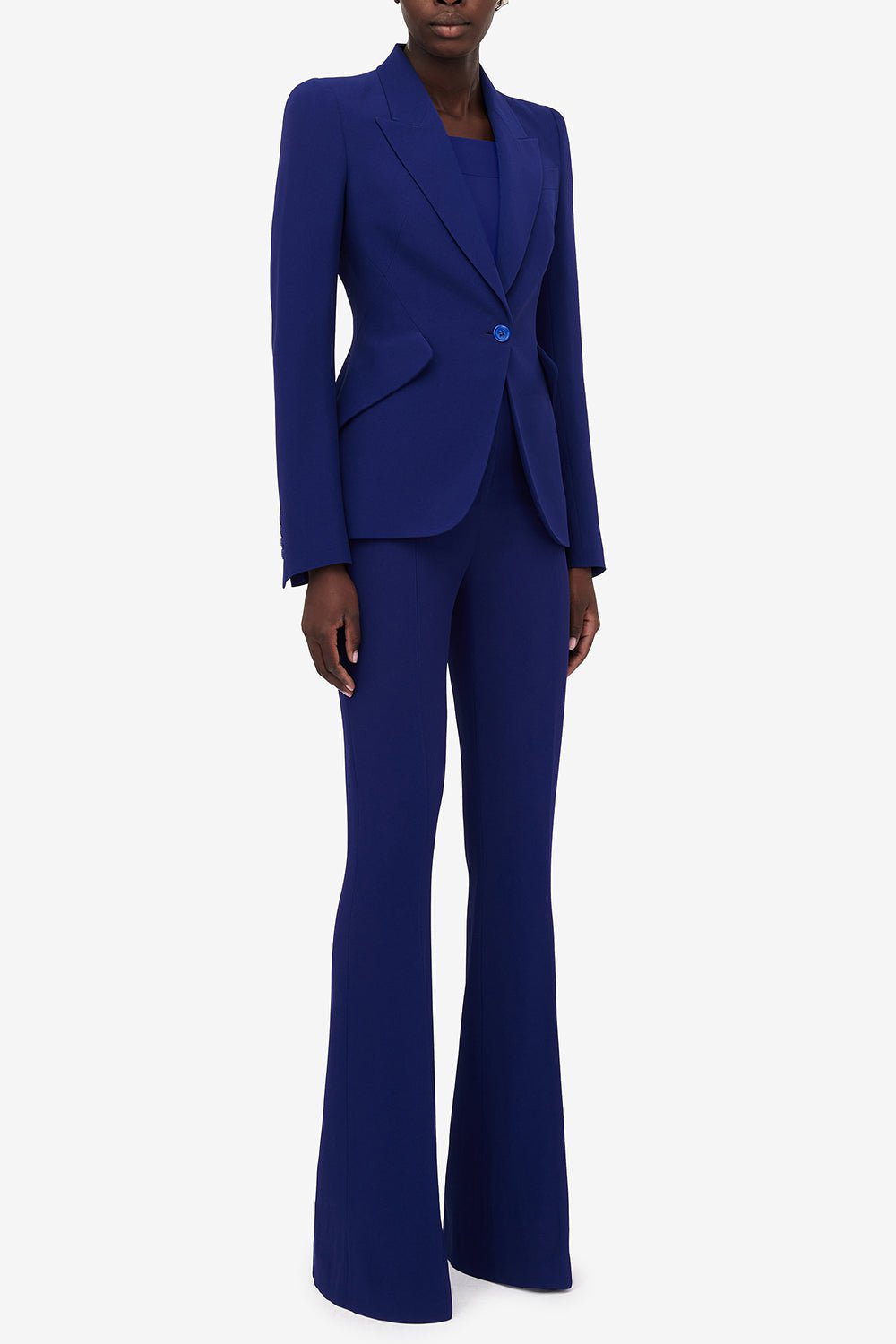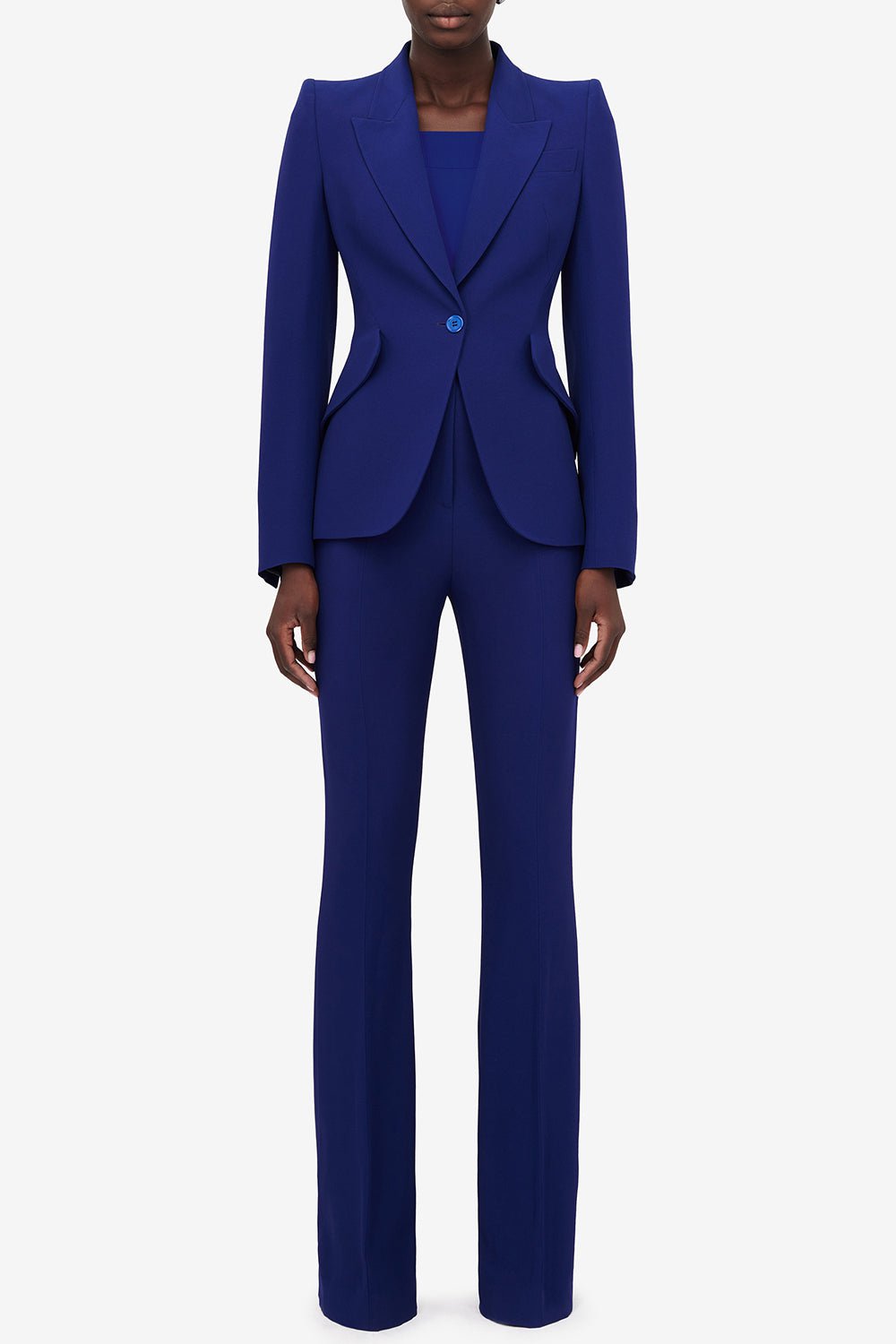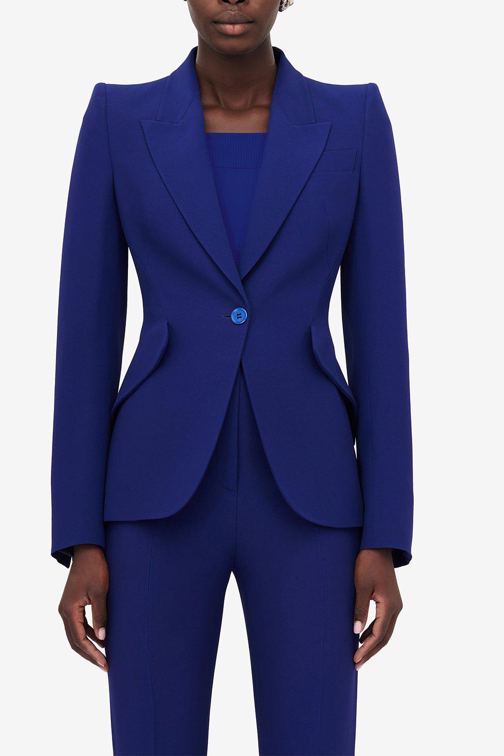 Alexander McQueen peak shoulder jacket in electric navy.