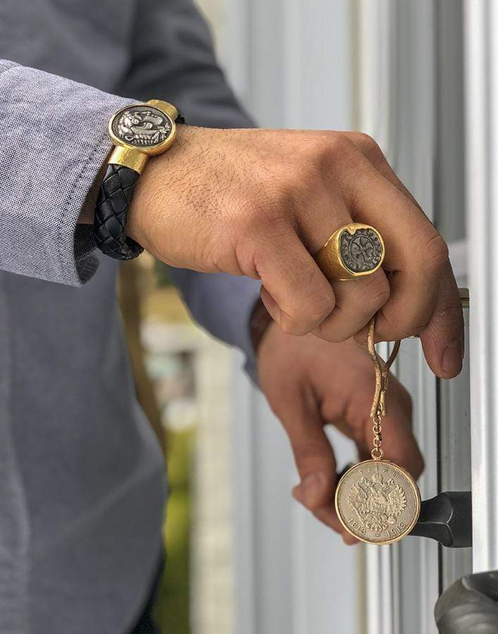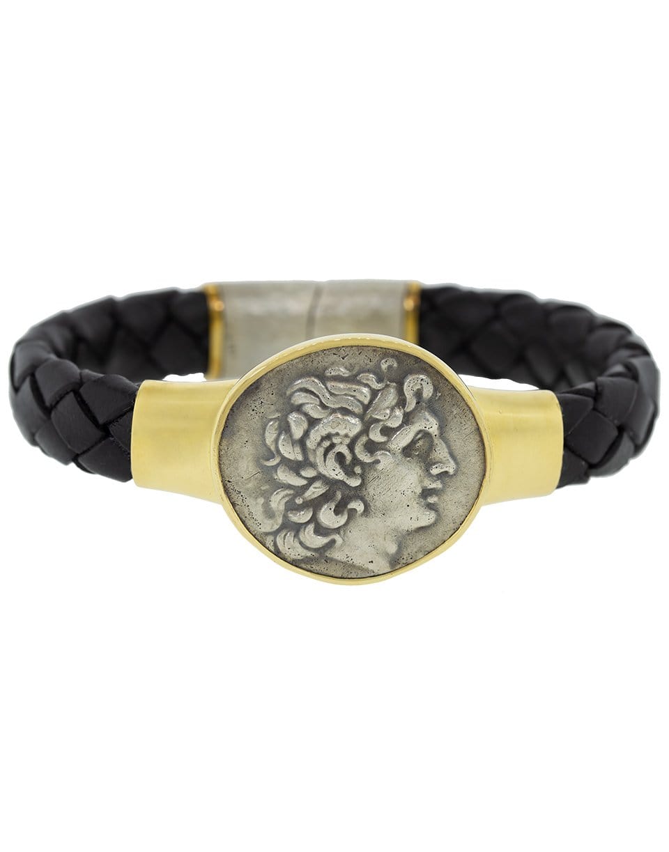 Jorge Adeler ancient and authentic Alexander the Great coin leather bracelet .
