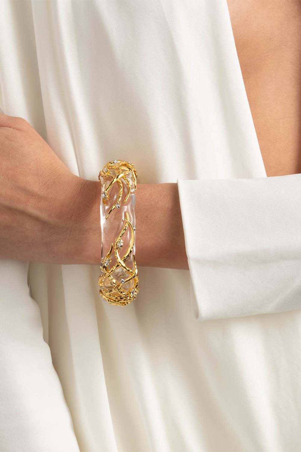 Alexis Bittar liquid vine lucite hinge bracelet in clear.