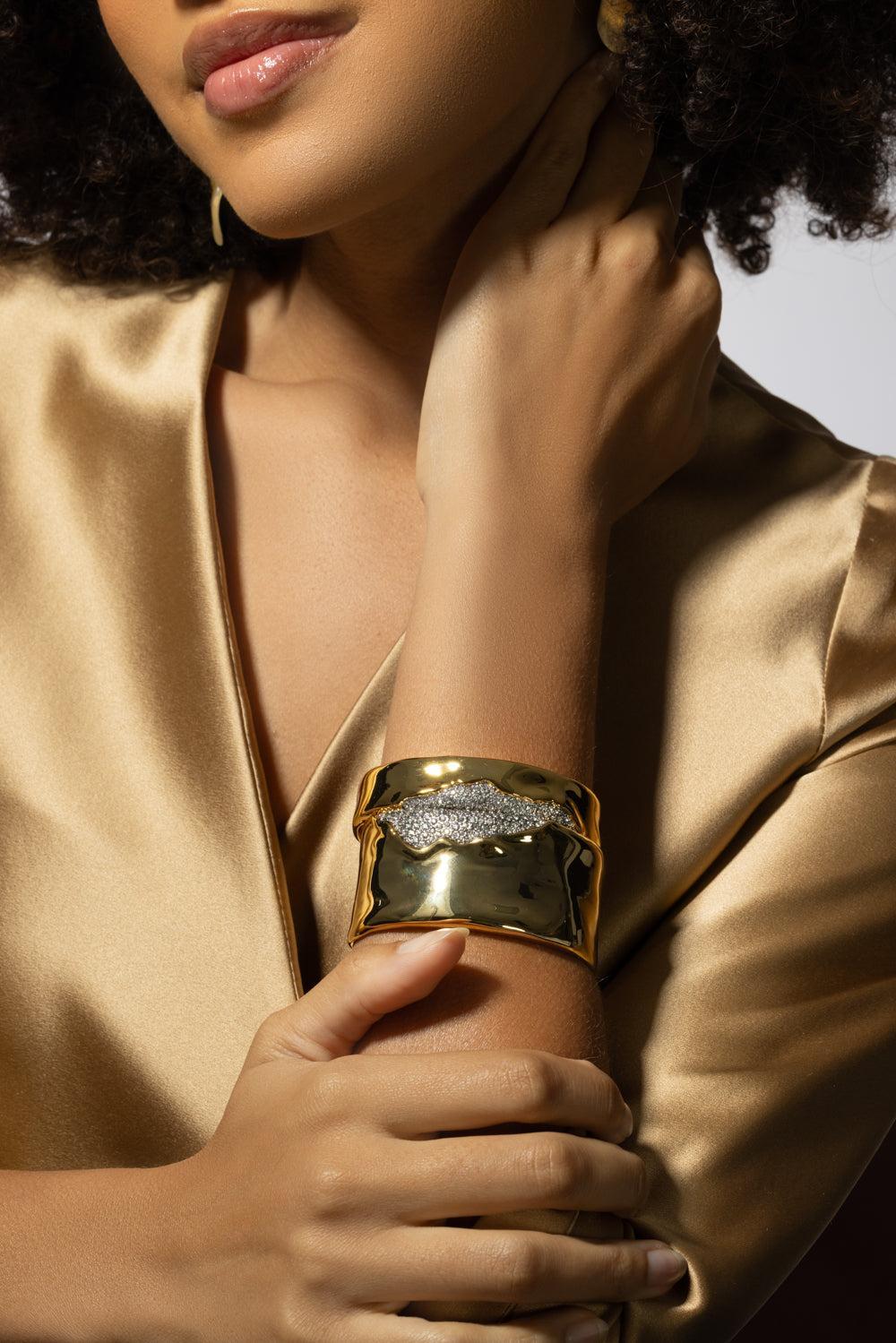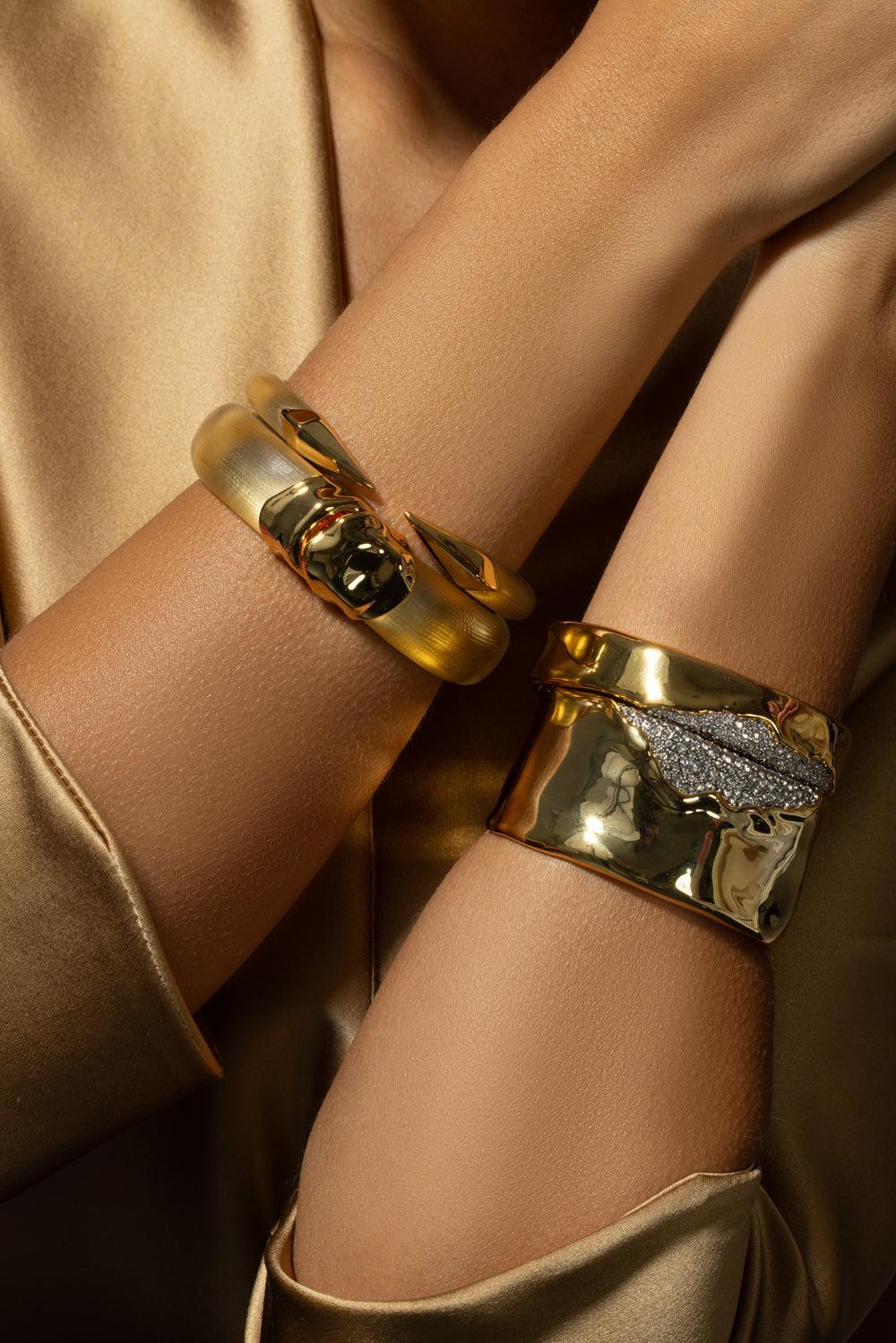 Alexis Bittar solanales crystal cuff bracelet in yellow.