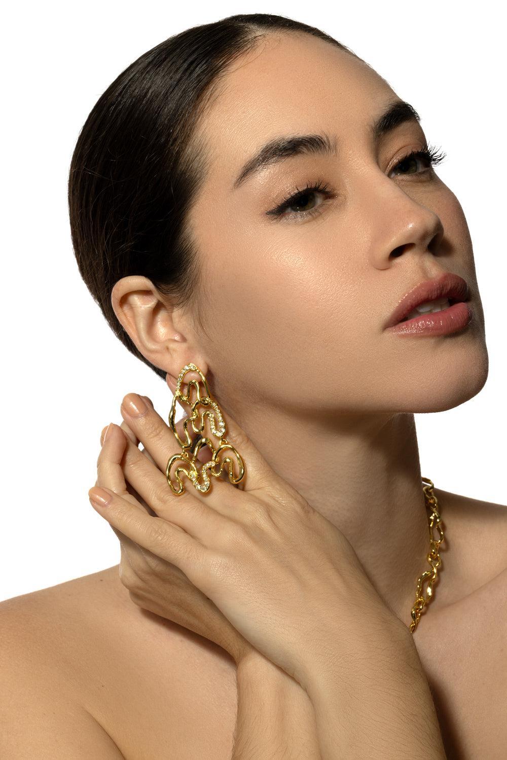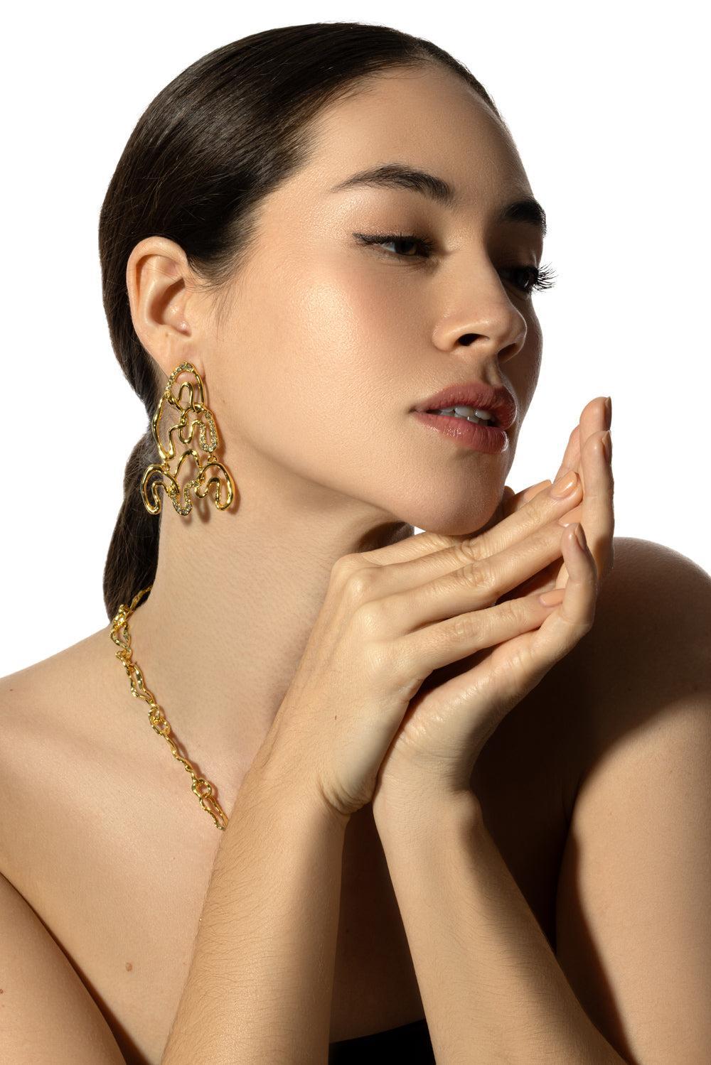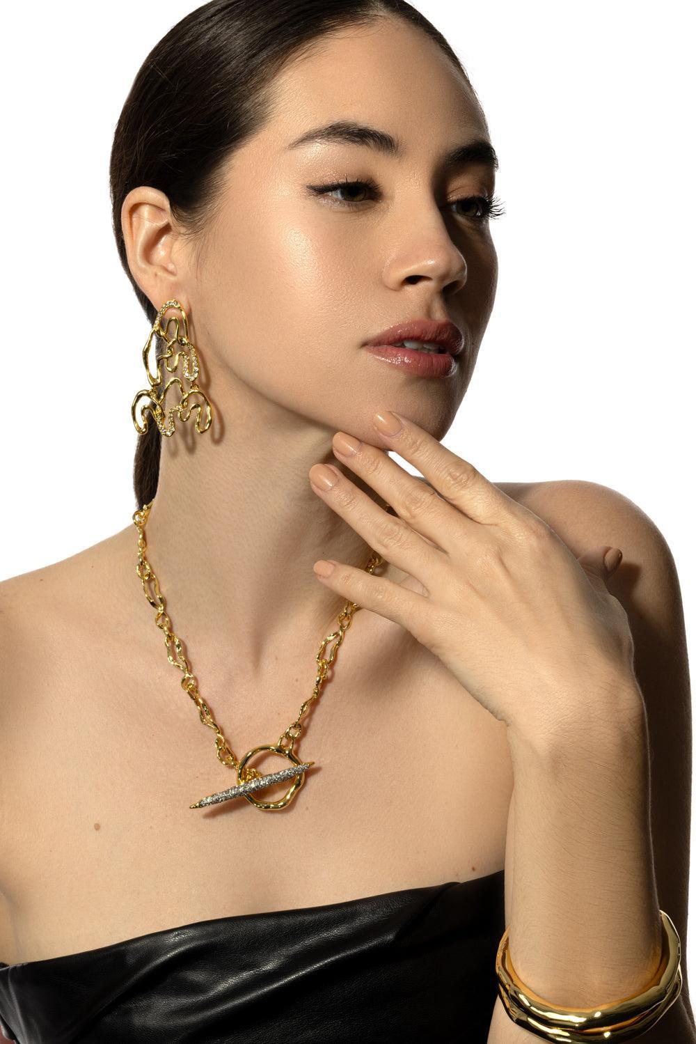 Alexis Bittar asterales arched long earrings in yellow.