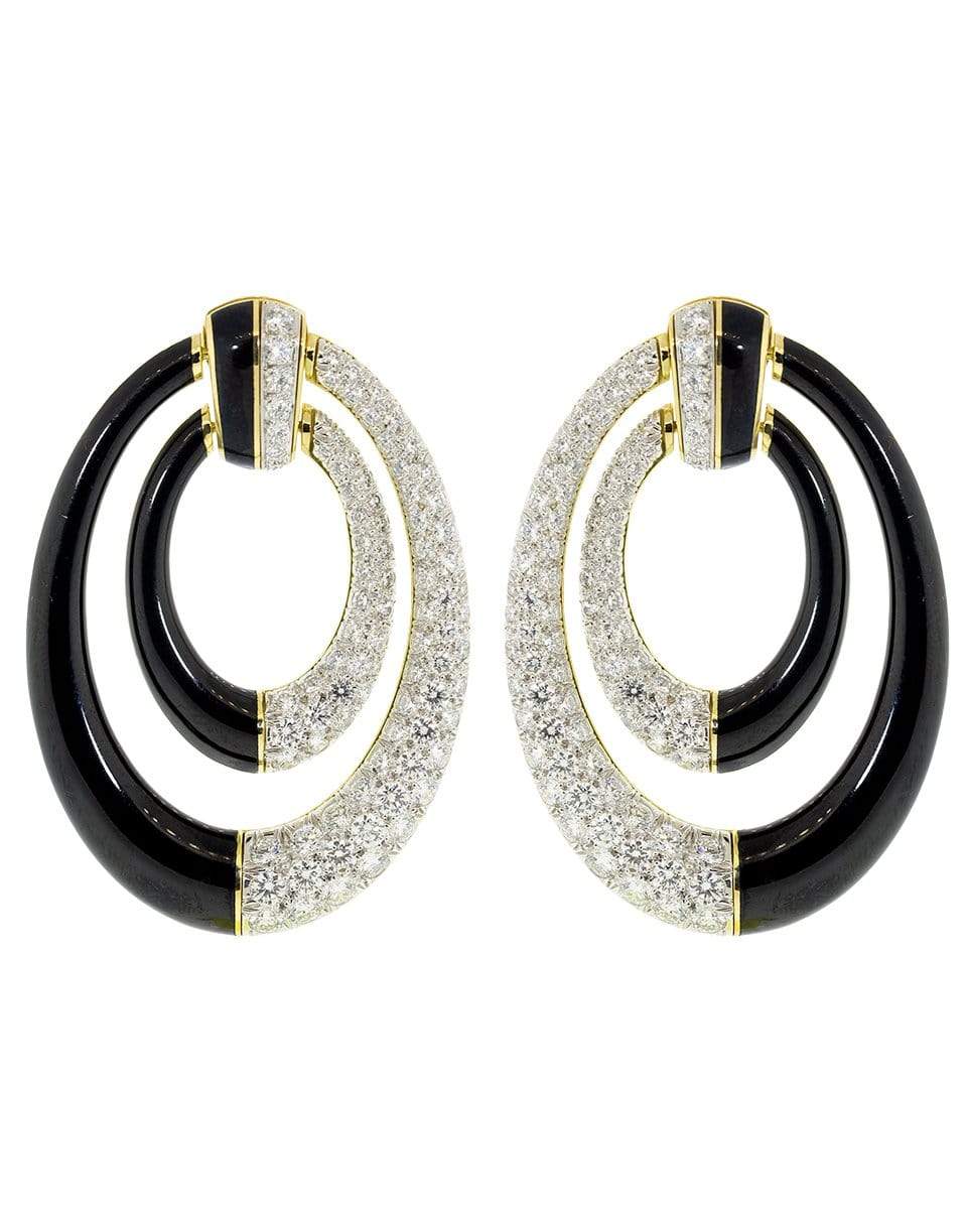 David Webb black enamel and diamond oval earrings with a clip-on style suitable for both pierced and non-pierced ears.