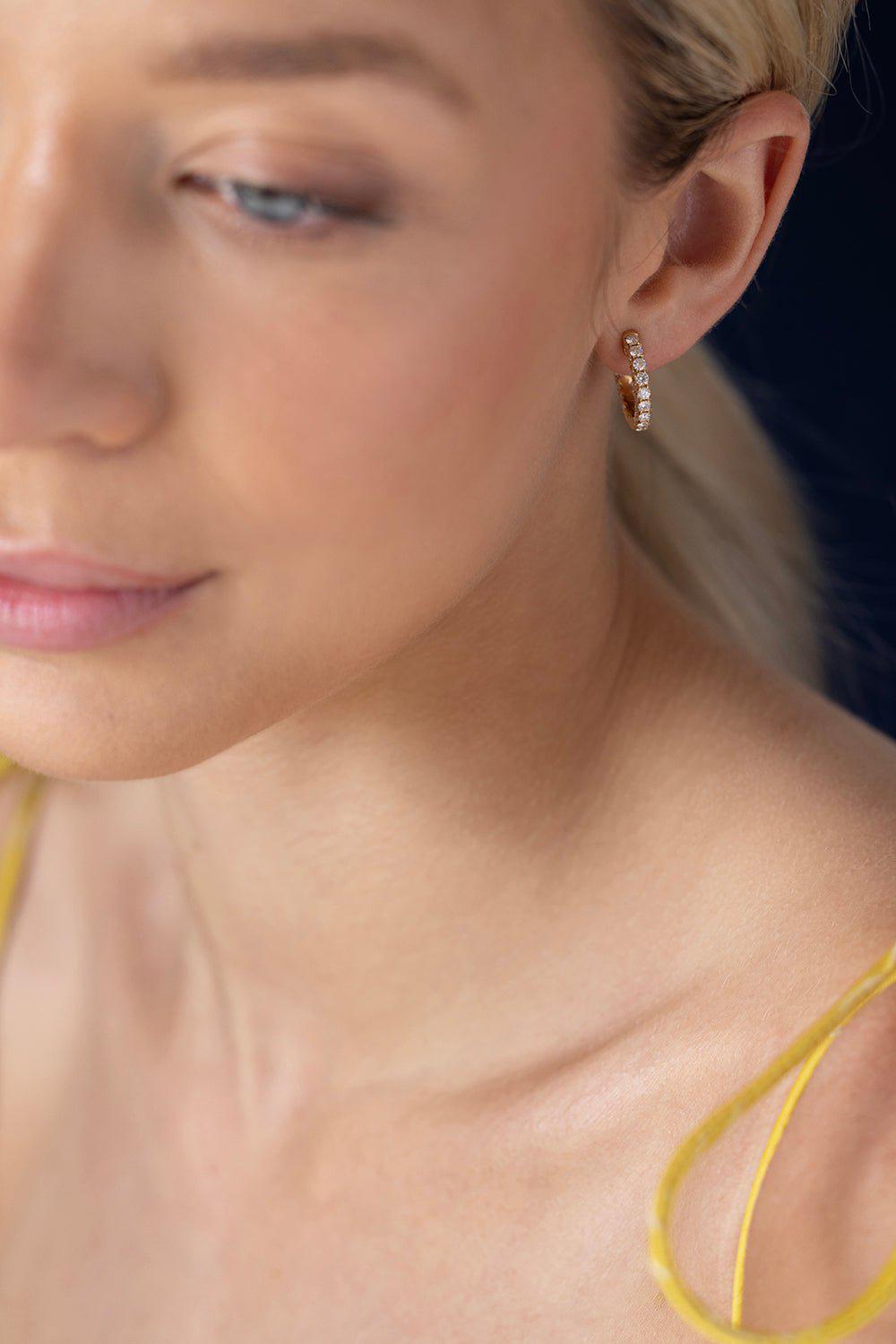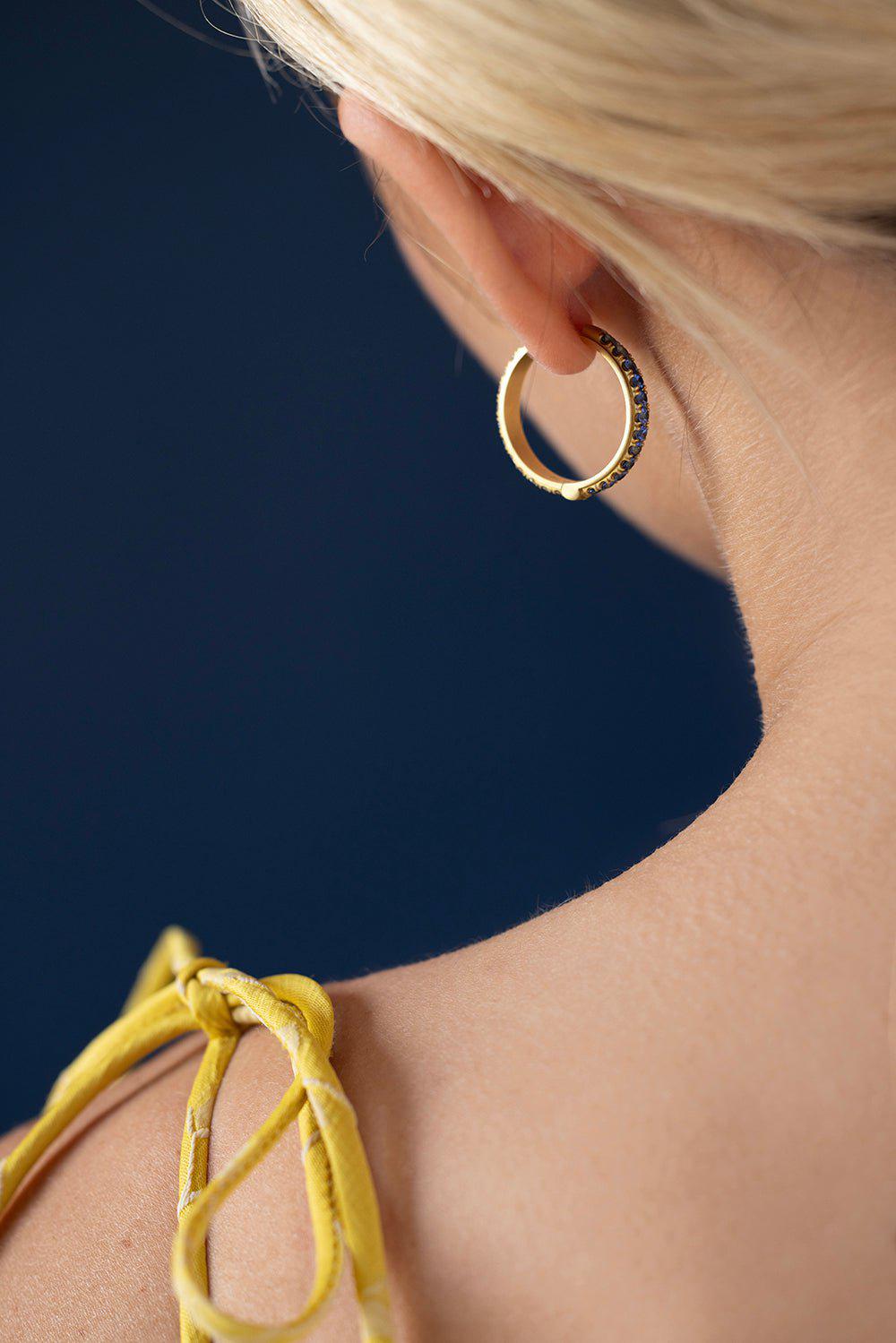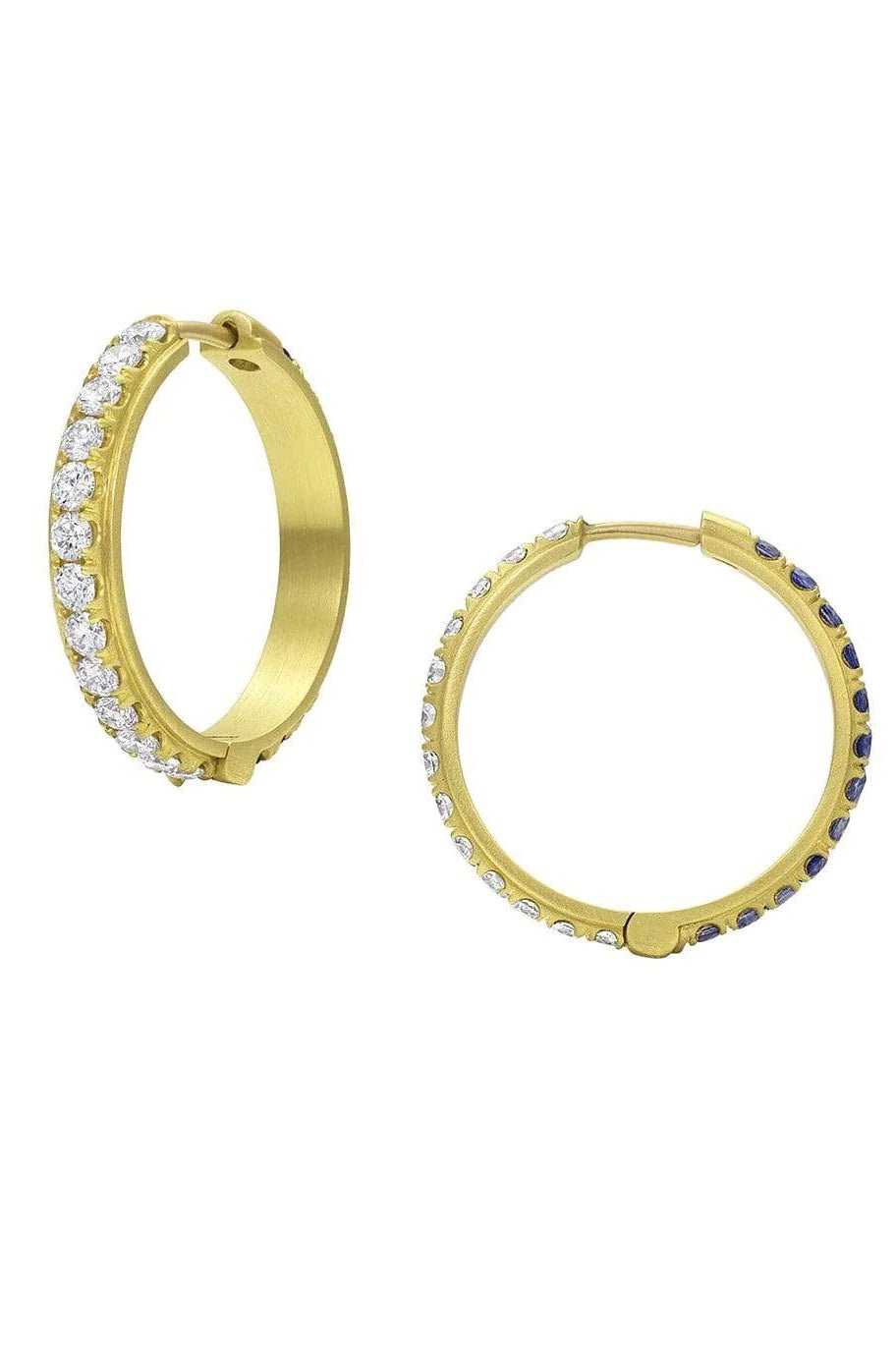 Leigh Maxwell Amani reversible hoop earrings can go from blue sapphire to white diamond.