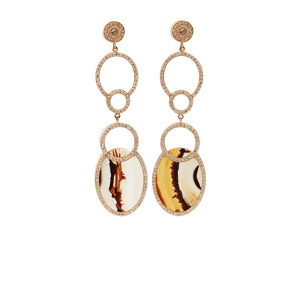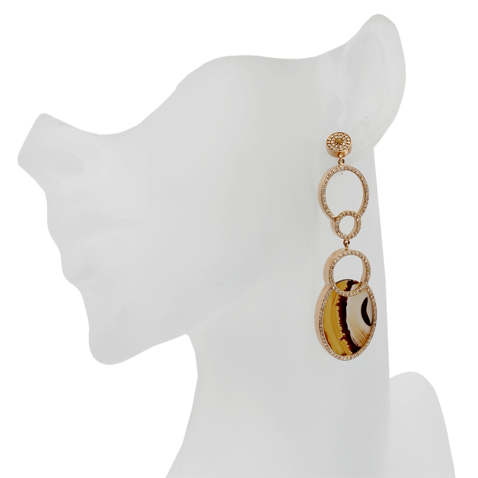 Bubble up in luminosity and adorn your ears with the enamoring beauty of these amber and diamond drop earrings. Post Earrings 2.75” x 0.75” at Bottom and 0.5” at Top Diamonds (1.98 CTW) Available in Yellow Gold