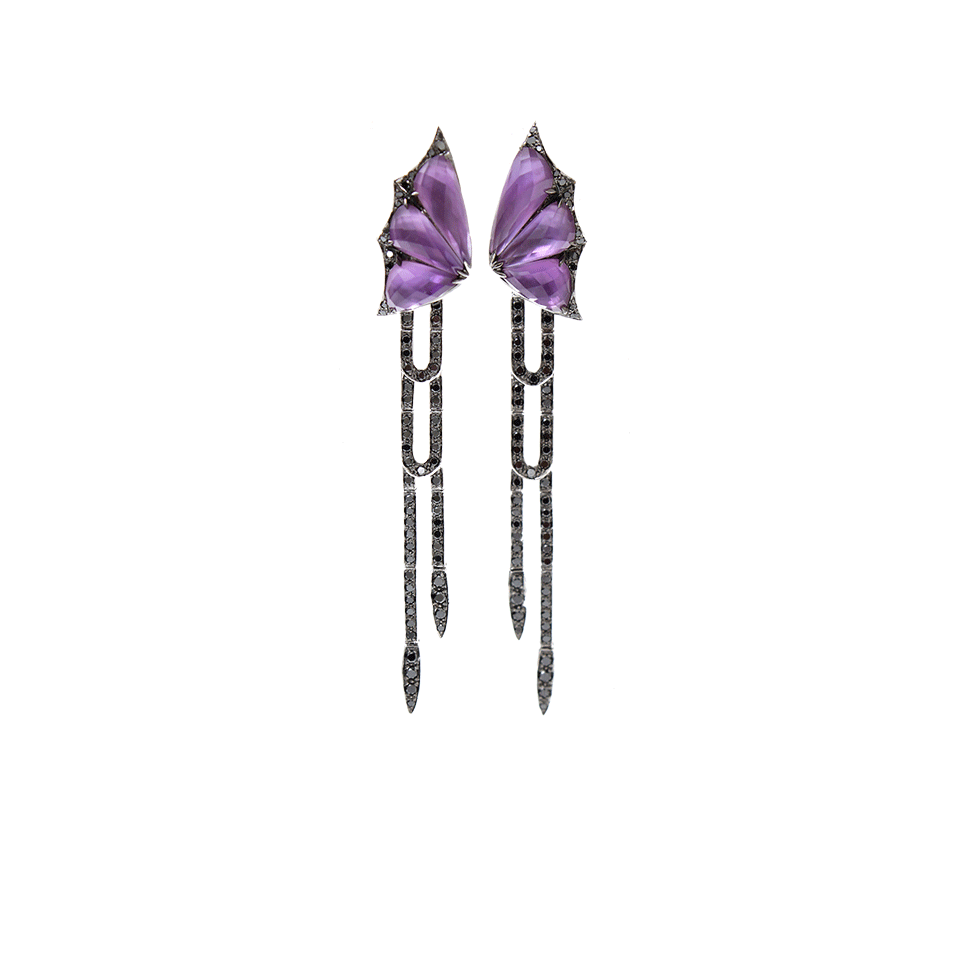 Amethyst Earrings Over Mother Of Pearl Center Stones Set With Removable Black Diamond Pave Drops From Stephen Webster