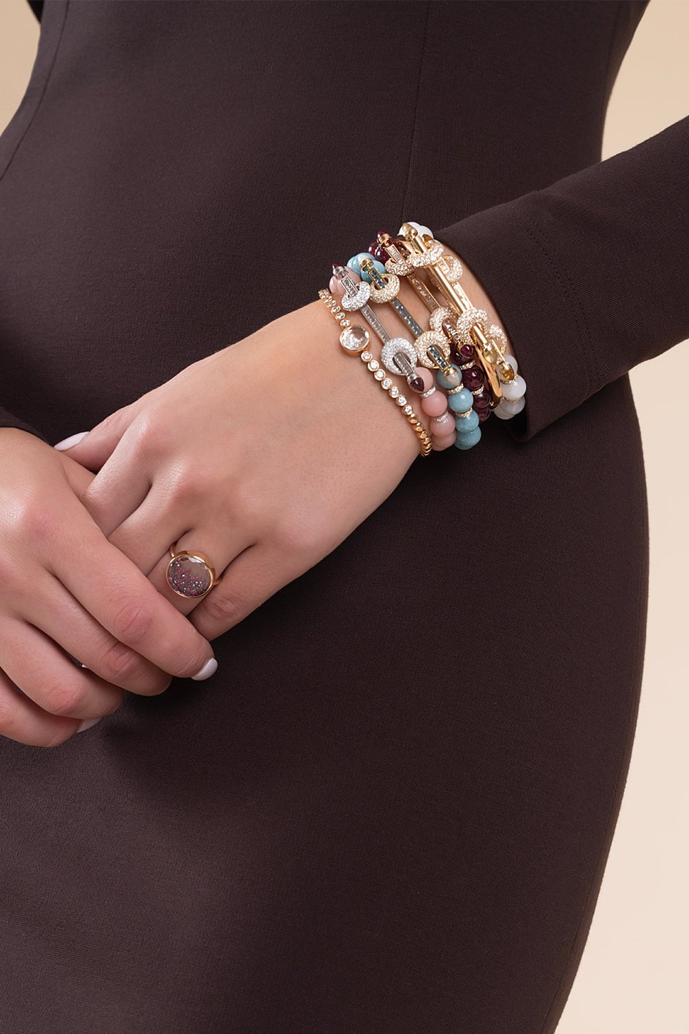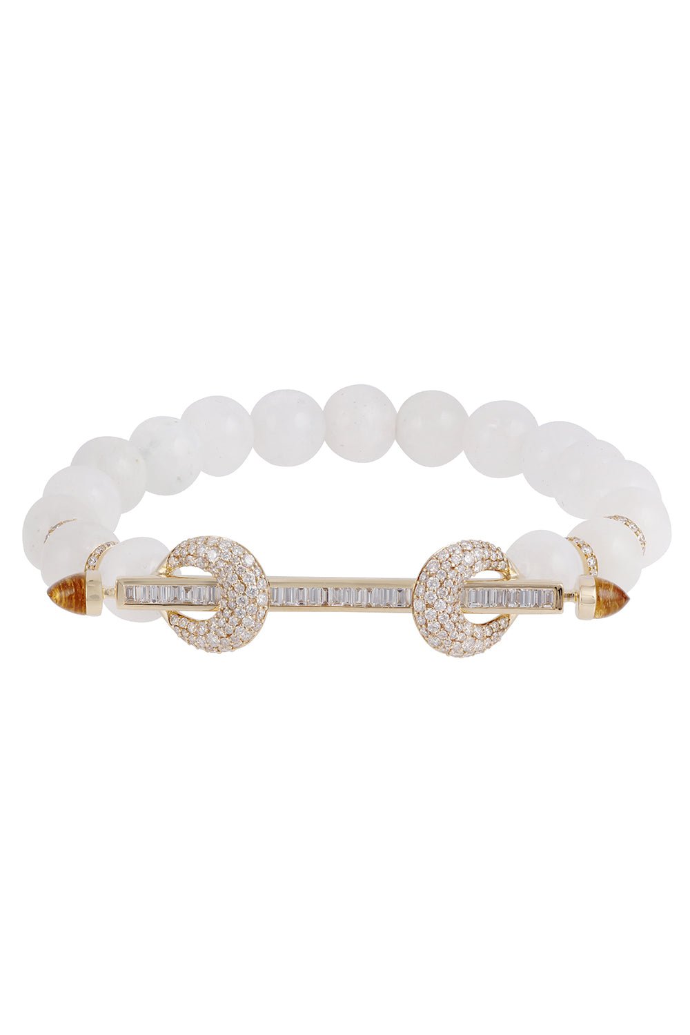 Ananya rainbow moonstone diamond chakra bracelet in yellow gold.