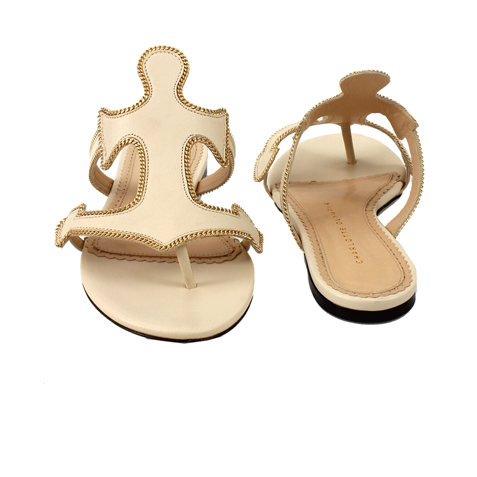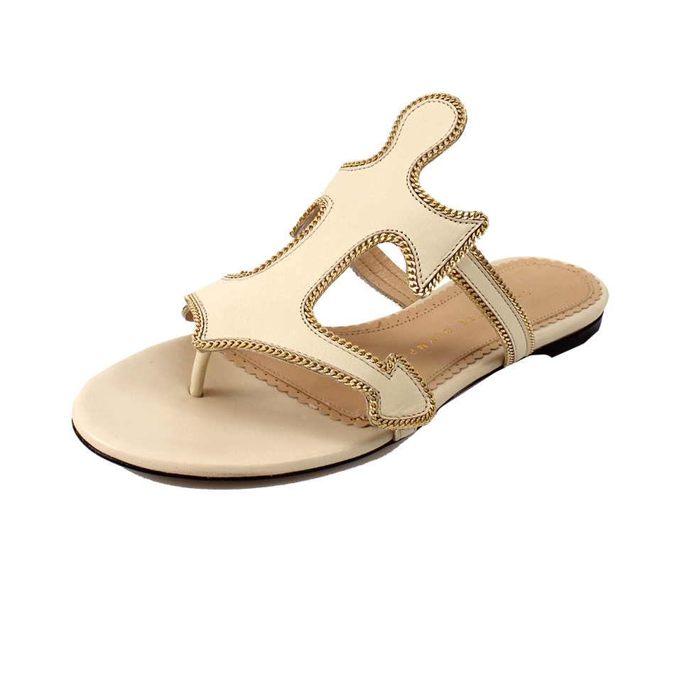Gold Chain Detailing With Leather Upper, Sole, And Insole
