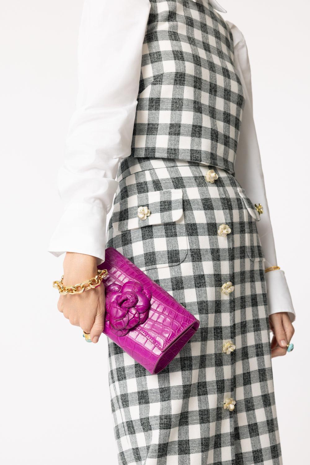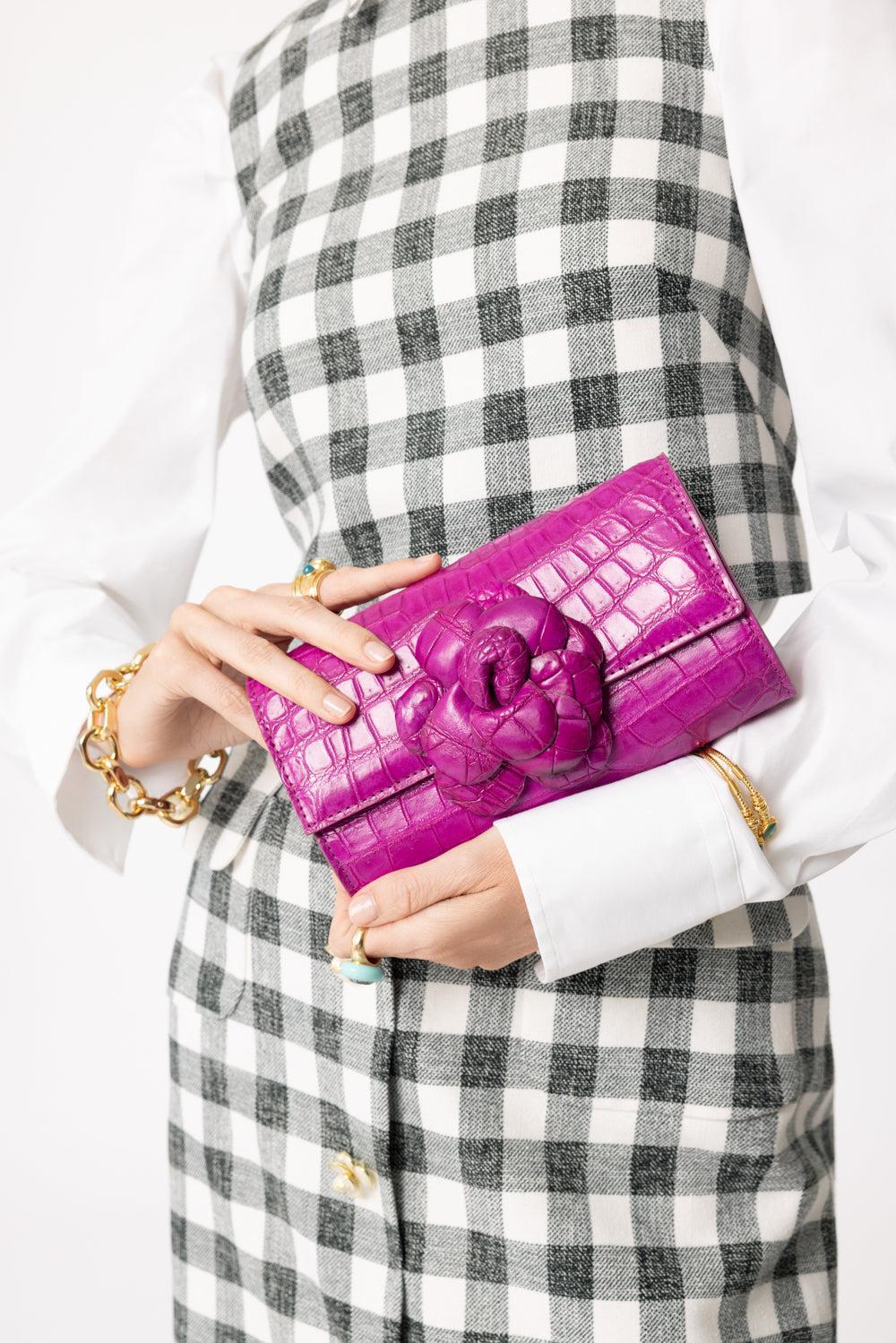 Angela Alvarez demi eva bo clutch in fuchsia.