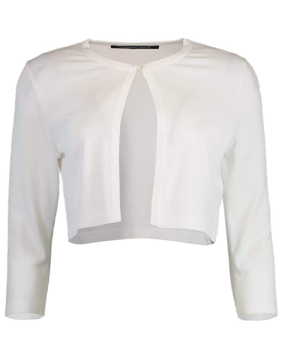Antonino Valenti one button Angie Bolero with a slim fit, round neckline, long sleeves, and a cropped length.