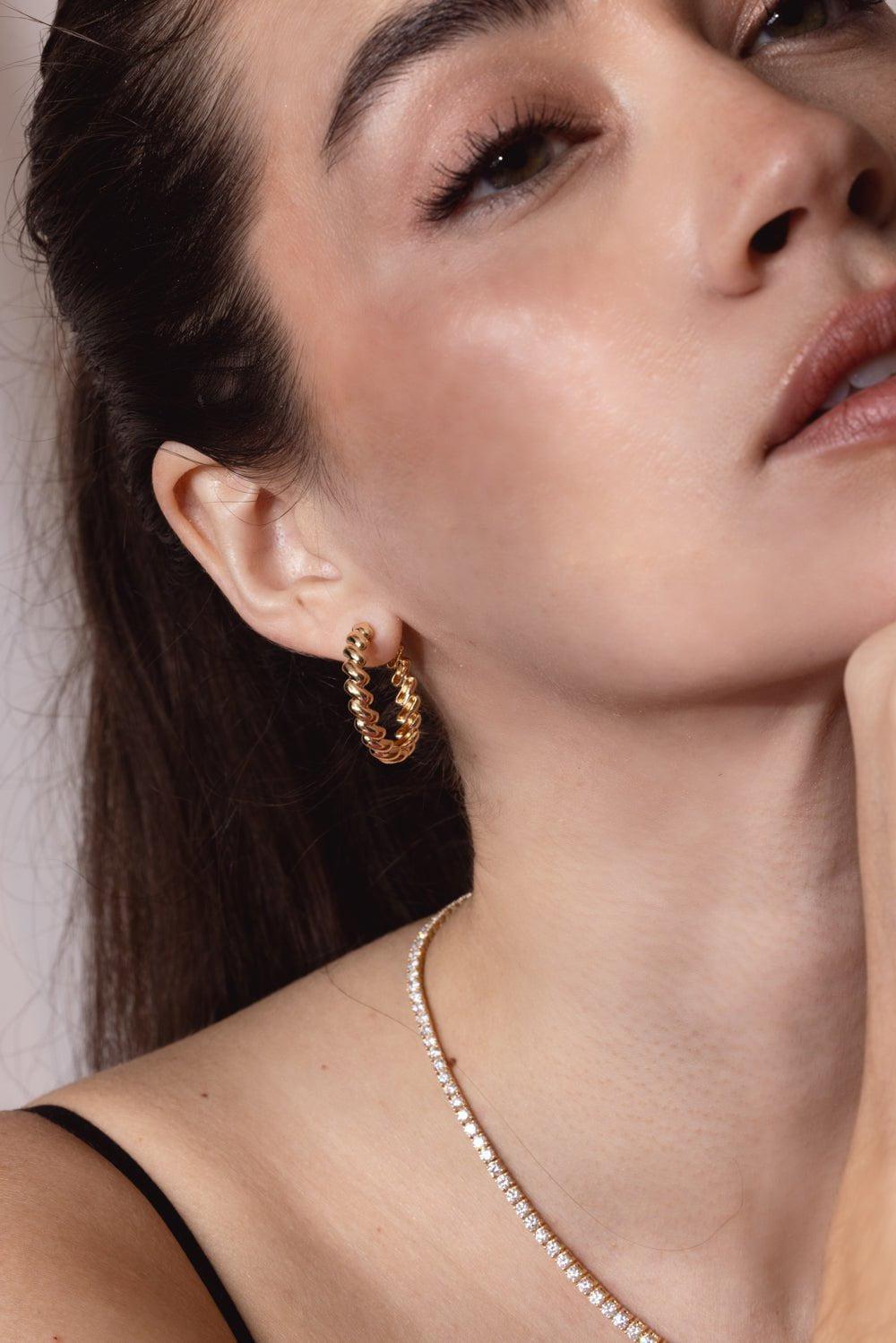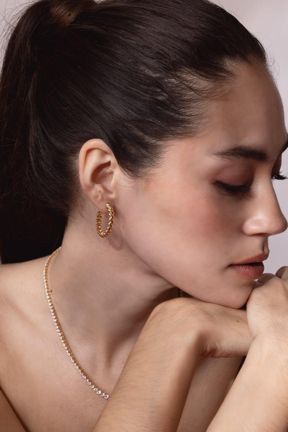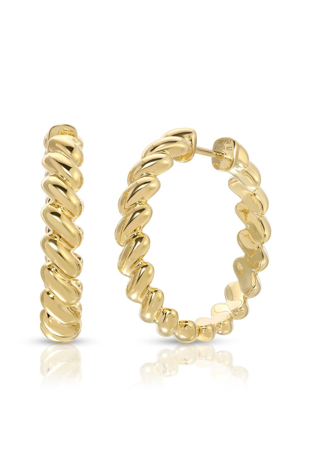 Anita Ko coil hoop earrings in yellow gold.
