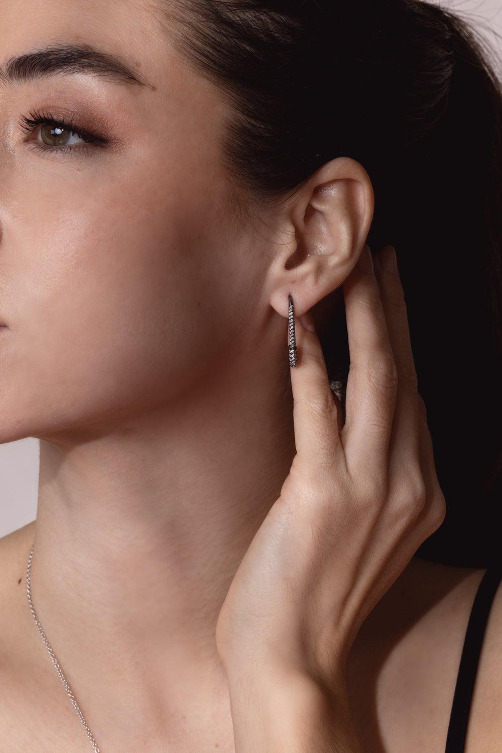 Anita Ko diamond safety pin earring in black gold.
