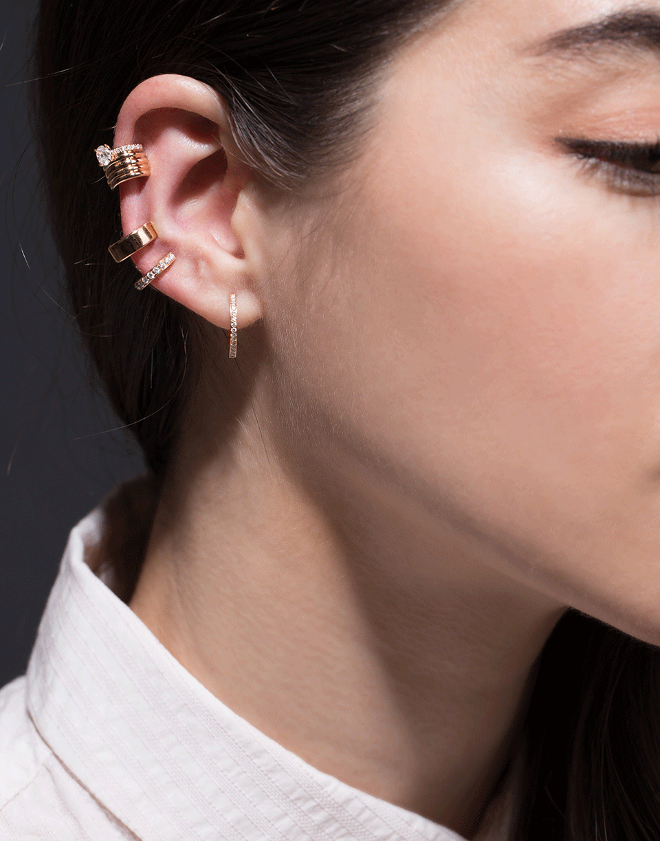 Repossi single Antifer earring half-paved row in Pink Gold. For pierced ears.