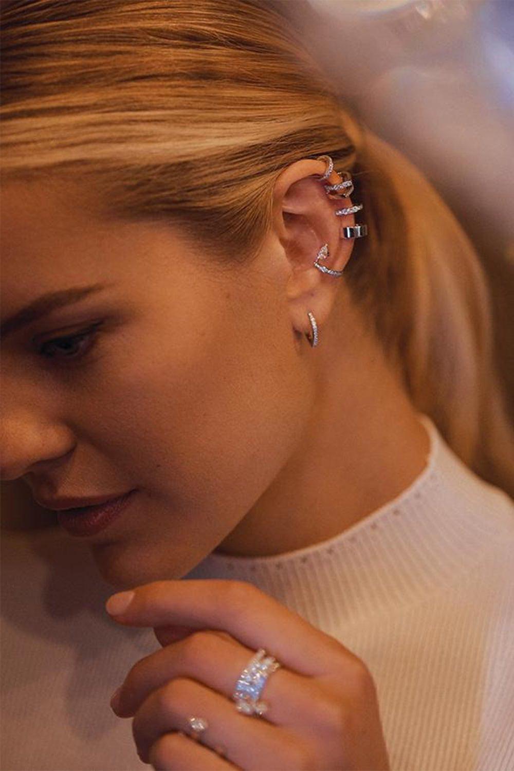 Repossi Antifer Off-Width earcuff with 2 rows and 1/3 paved in White Gold.