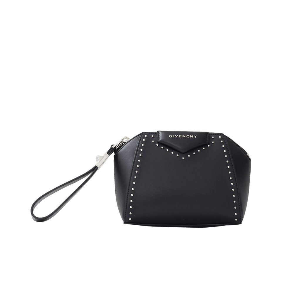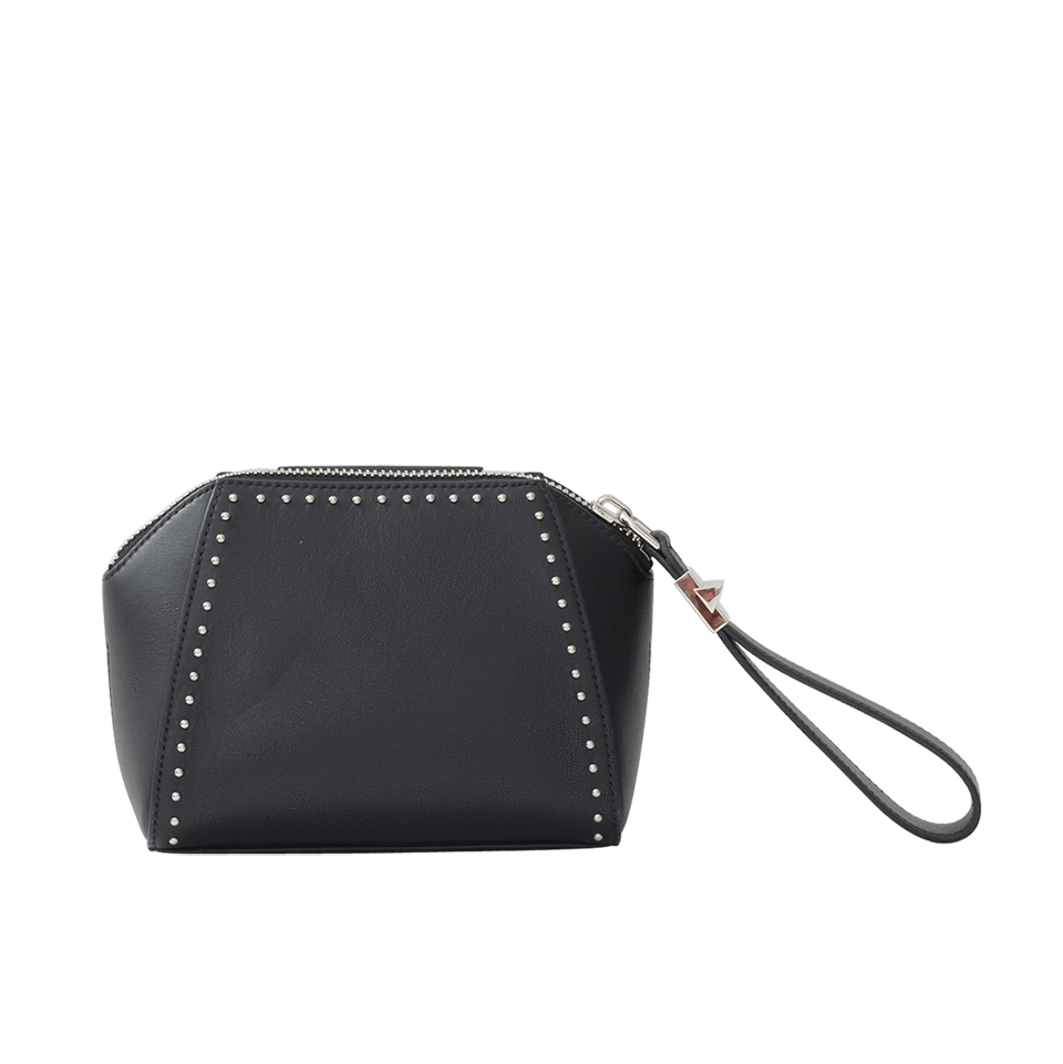 Exposed Top Zip Closure With Silver Hardware And Stud Detail Front And Back Trim