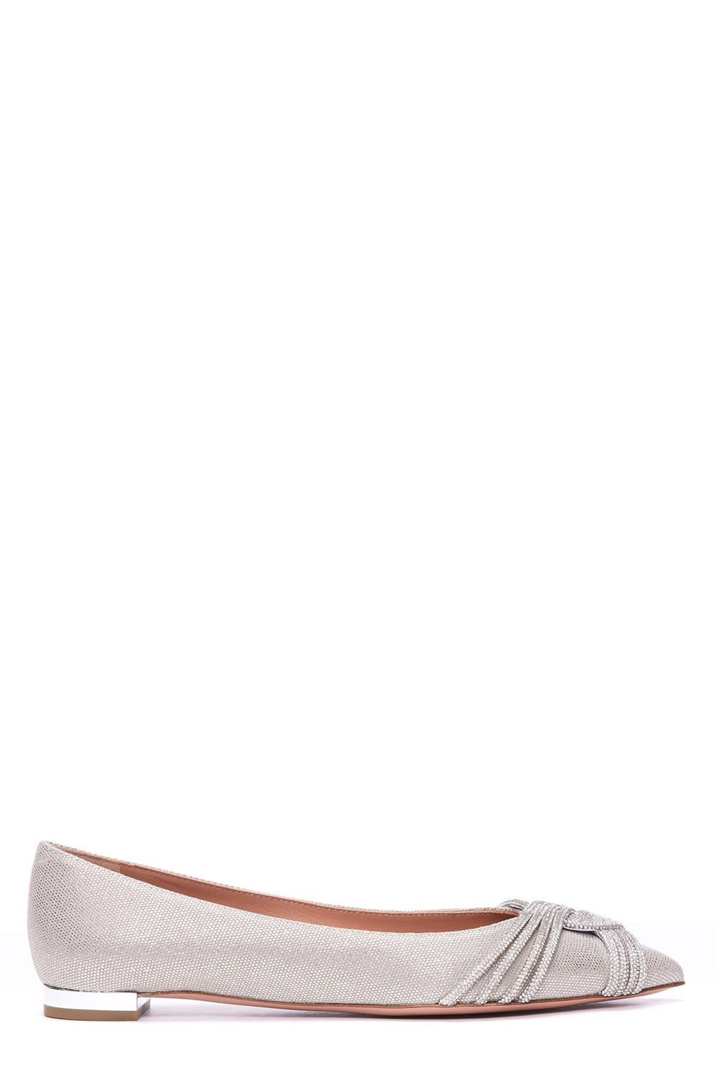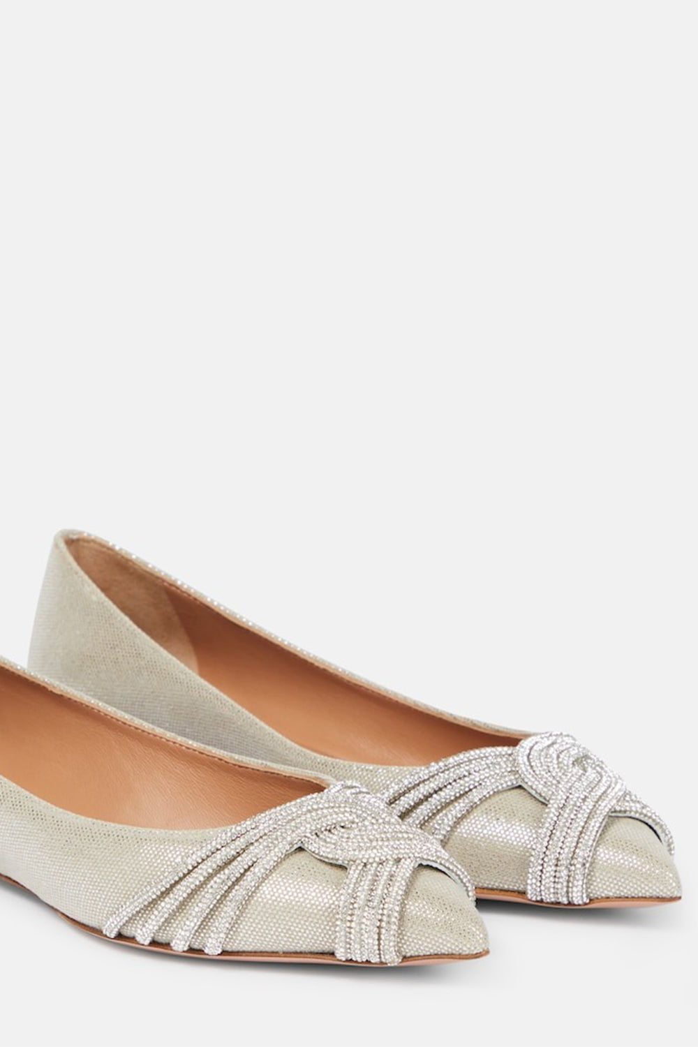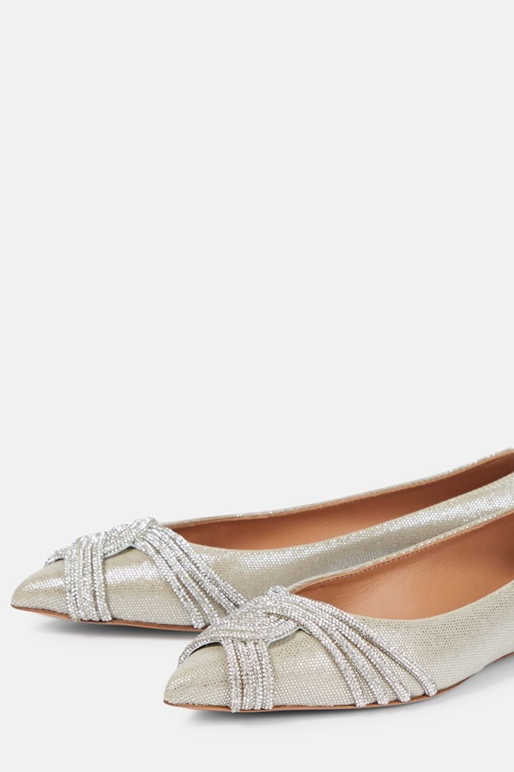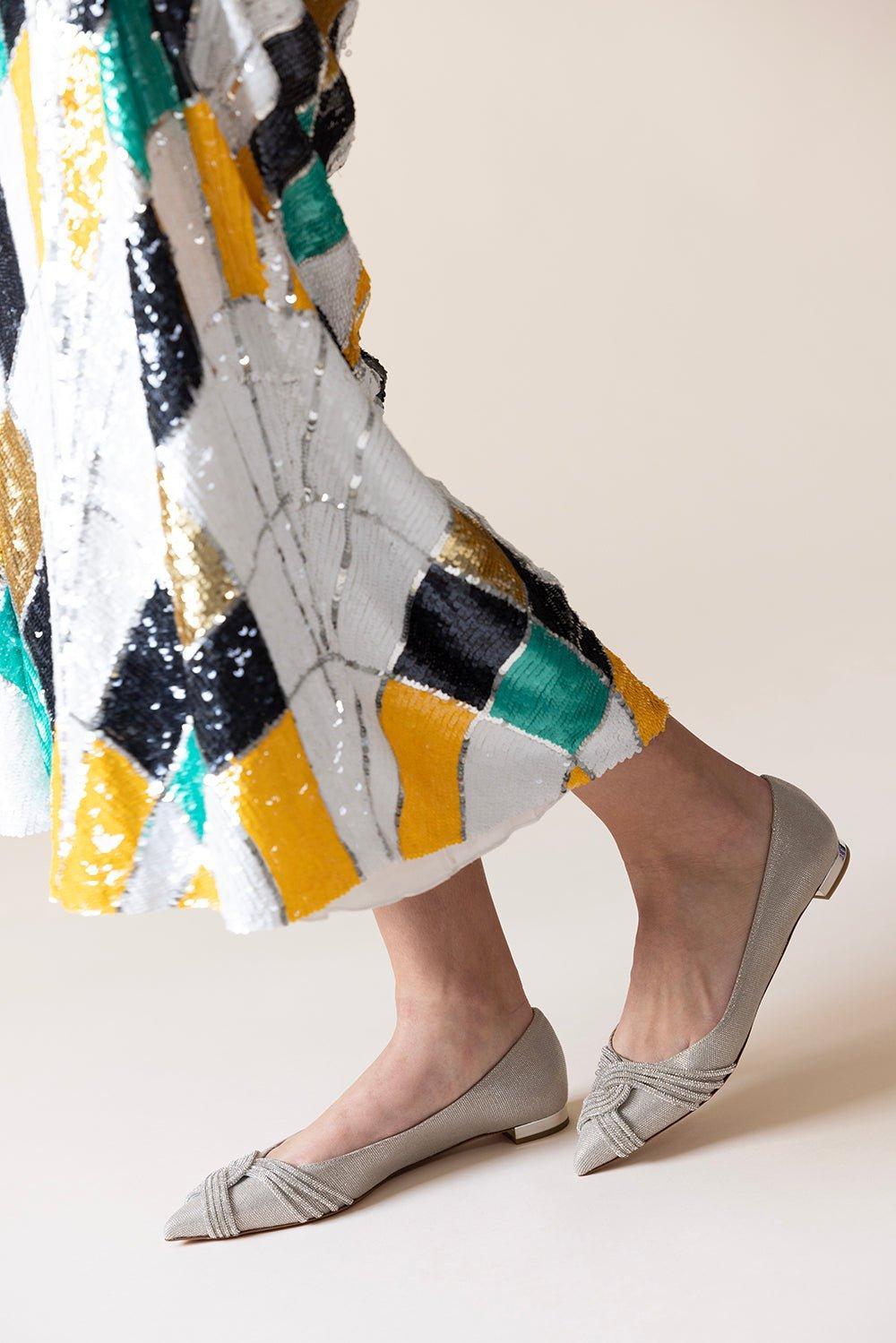 UPPER: 100% Textile (CO 83% - PL 15%.- PA 2% woven) partially covered with Crystal and Plastic ornament (50% crystal/50%plastic).SOLE: 100% Calf Leather (Bos Taurus) - Origin France - FarmedLINING: 100% Lamb (Nappa) Leather (Ovis Aries Aries) - Origin Nigeria - Farmed