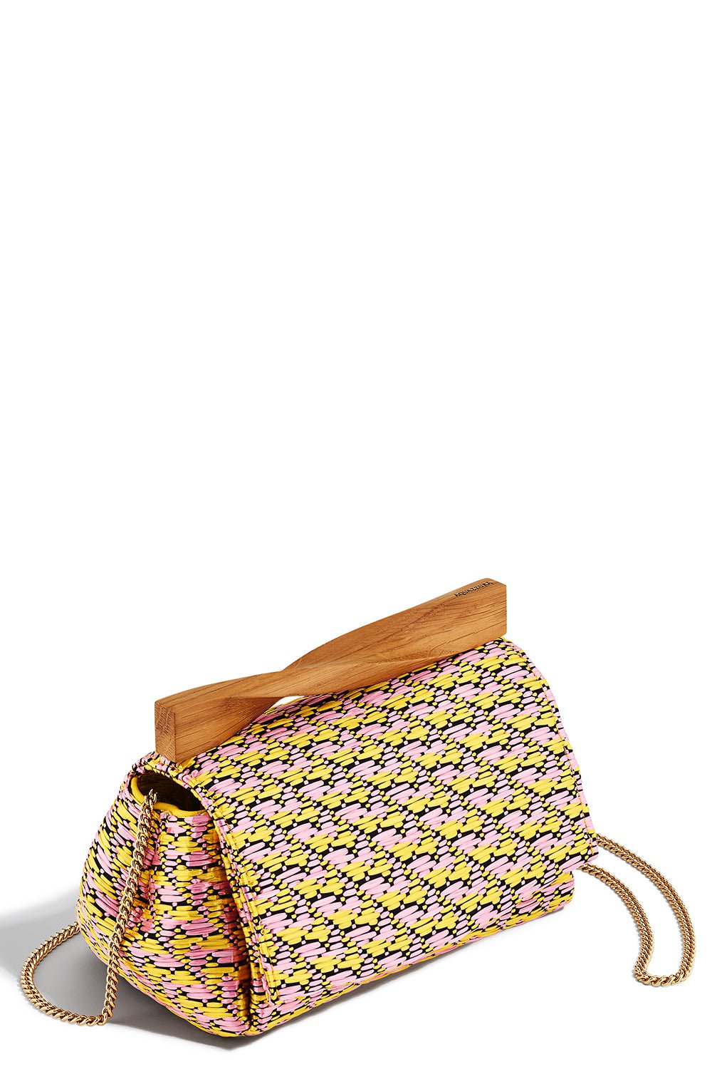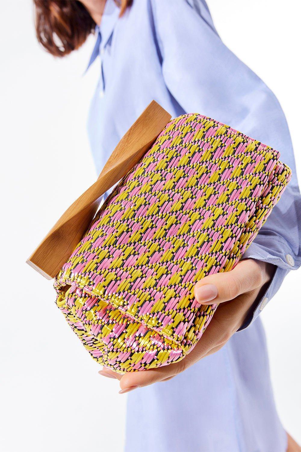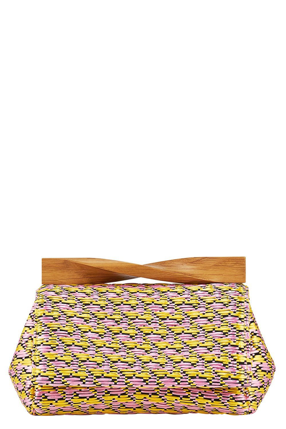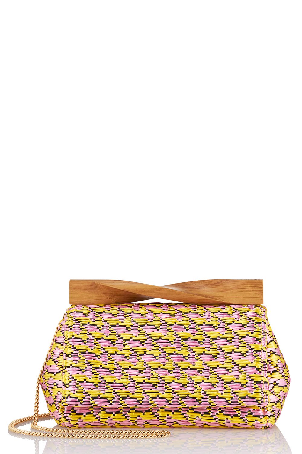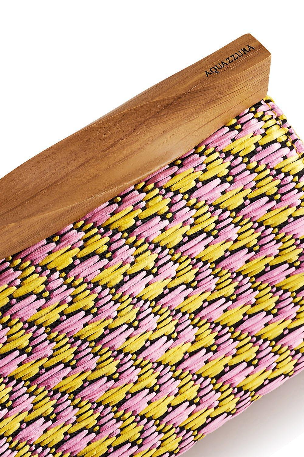 Aquazzura wooden twist clutch in petal rose/light gold/light walnut.