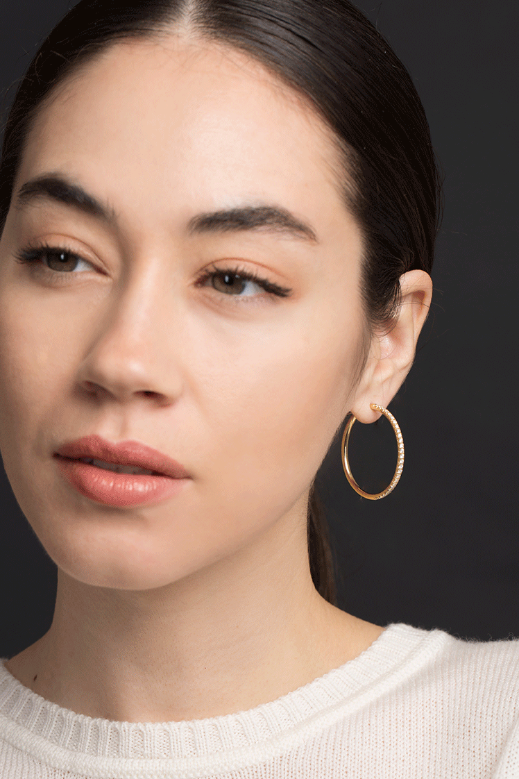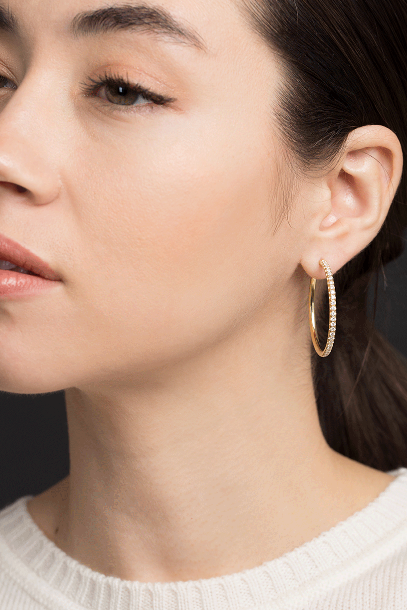 Spinelli Kilcollin Argo max pave diamond hoop earrings set in 18k yellow gold.