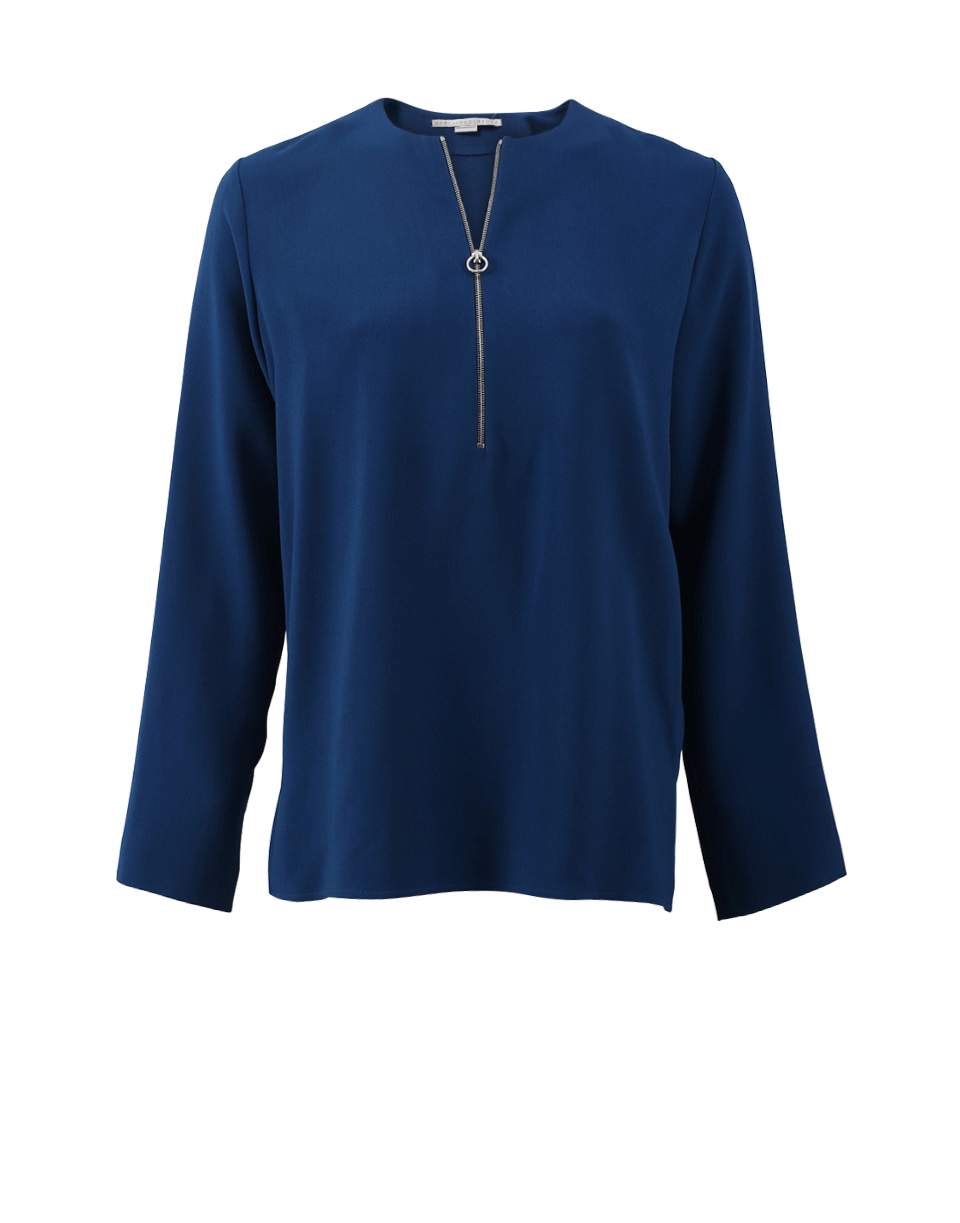 Crew Neckline With Zip Front Closure And Long Sleeves