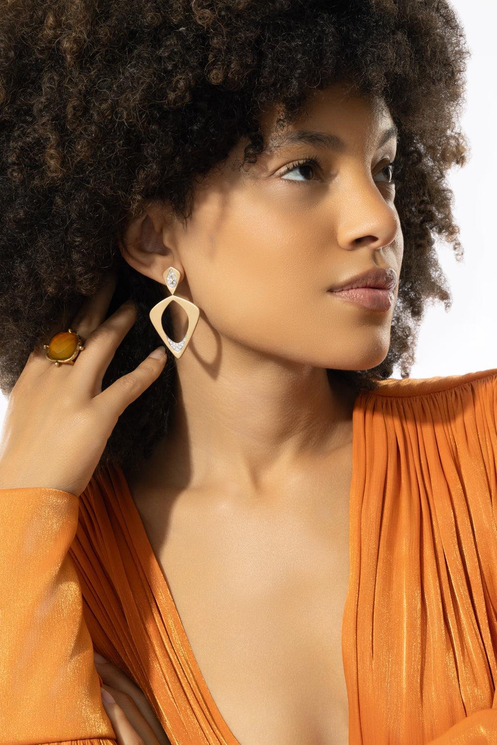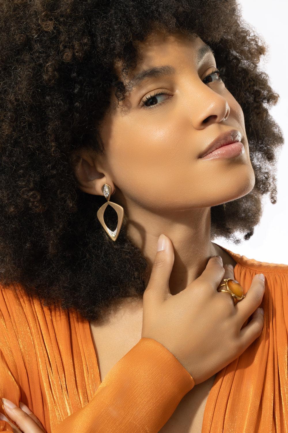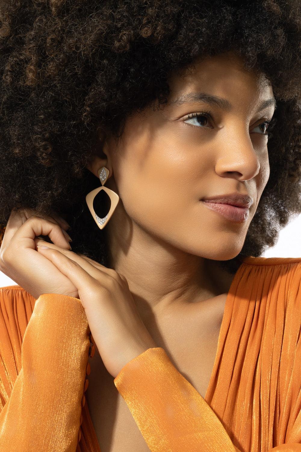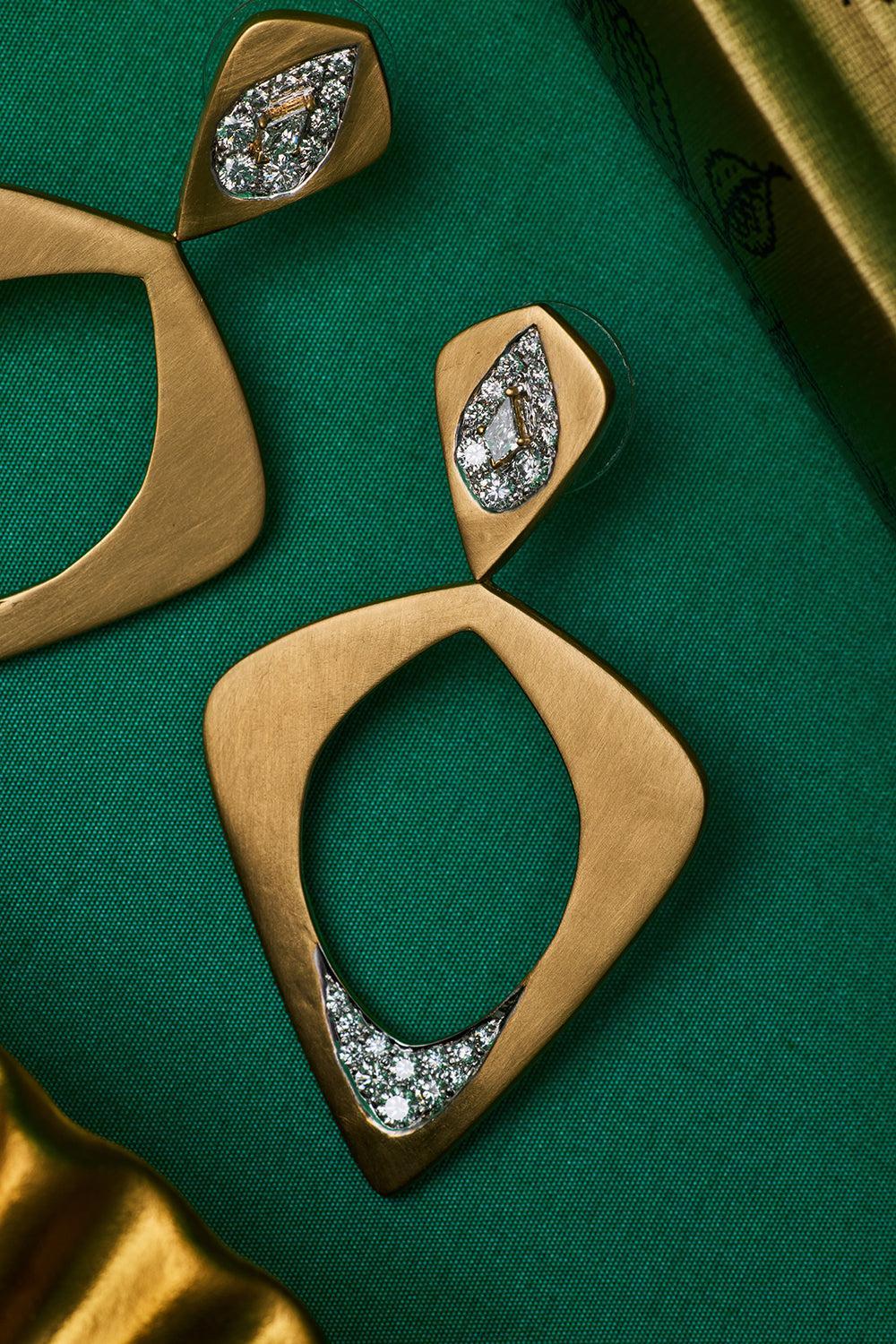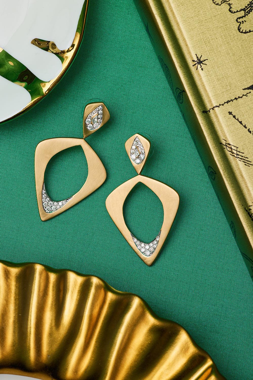 Arunashi wicker single layer earrings in yellow gold.